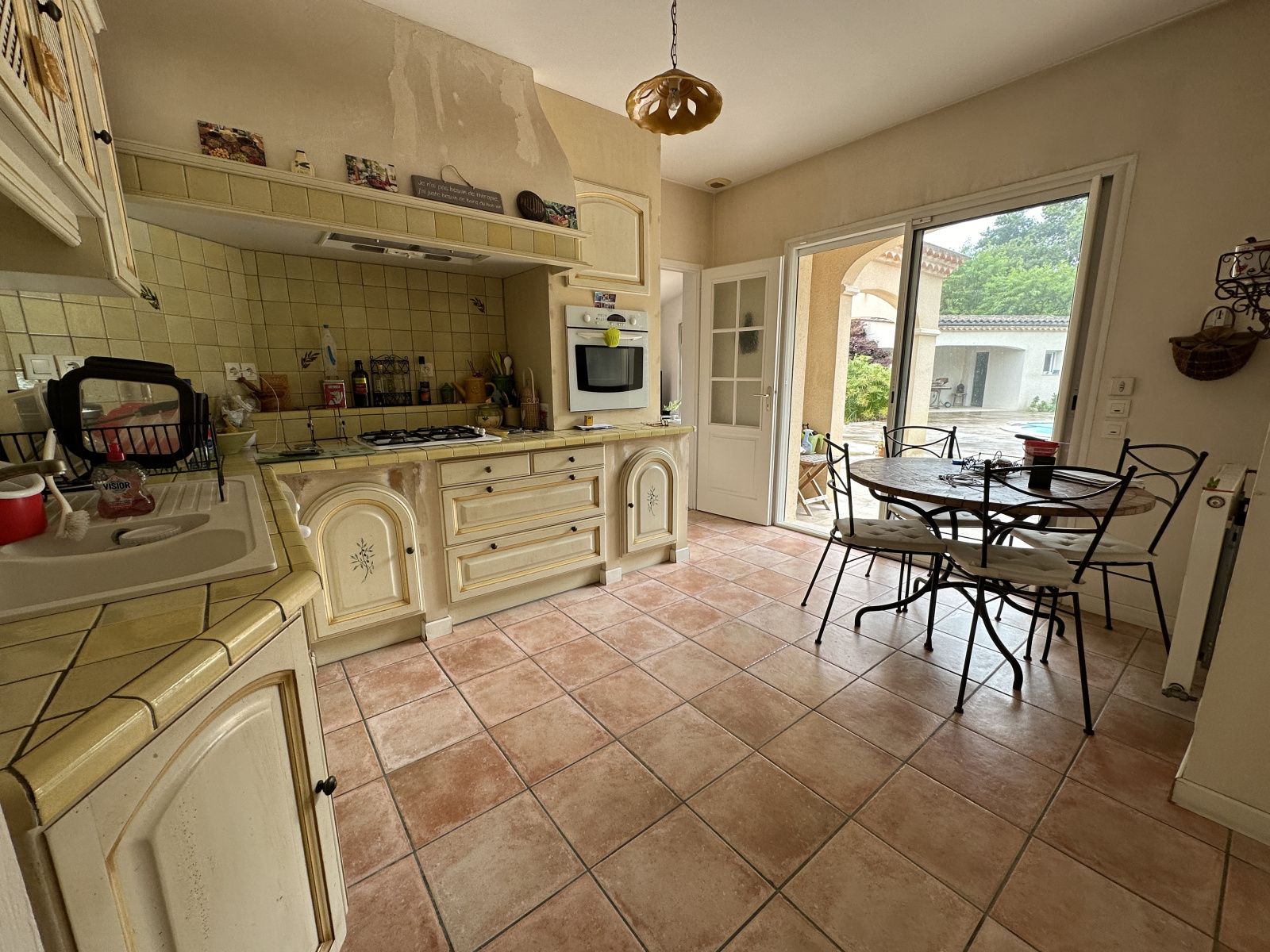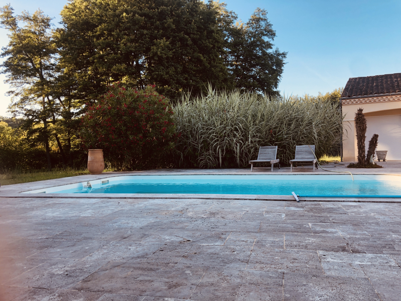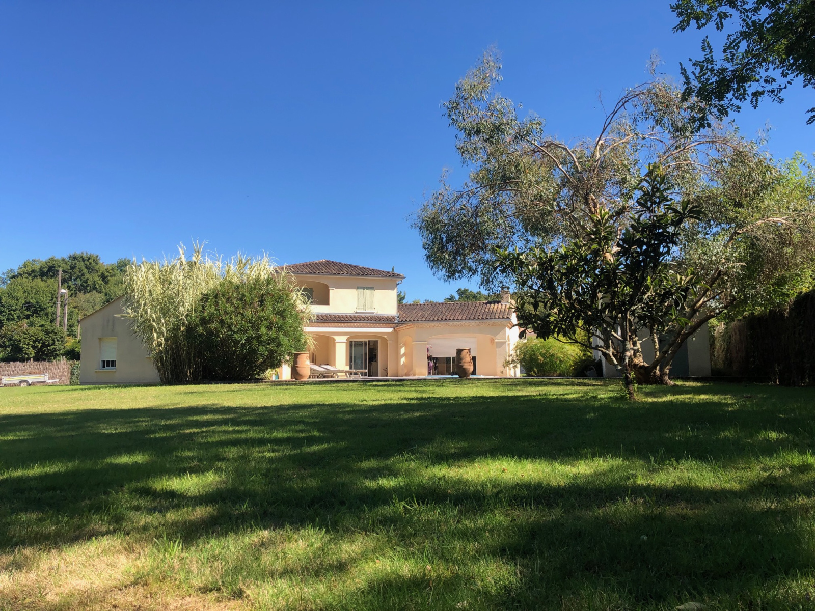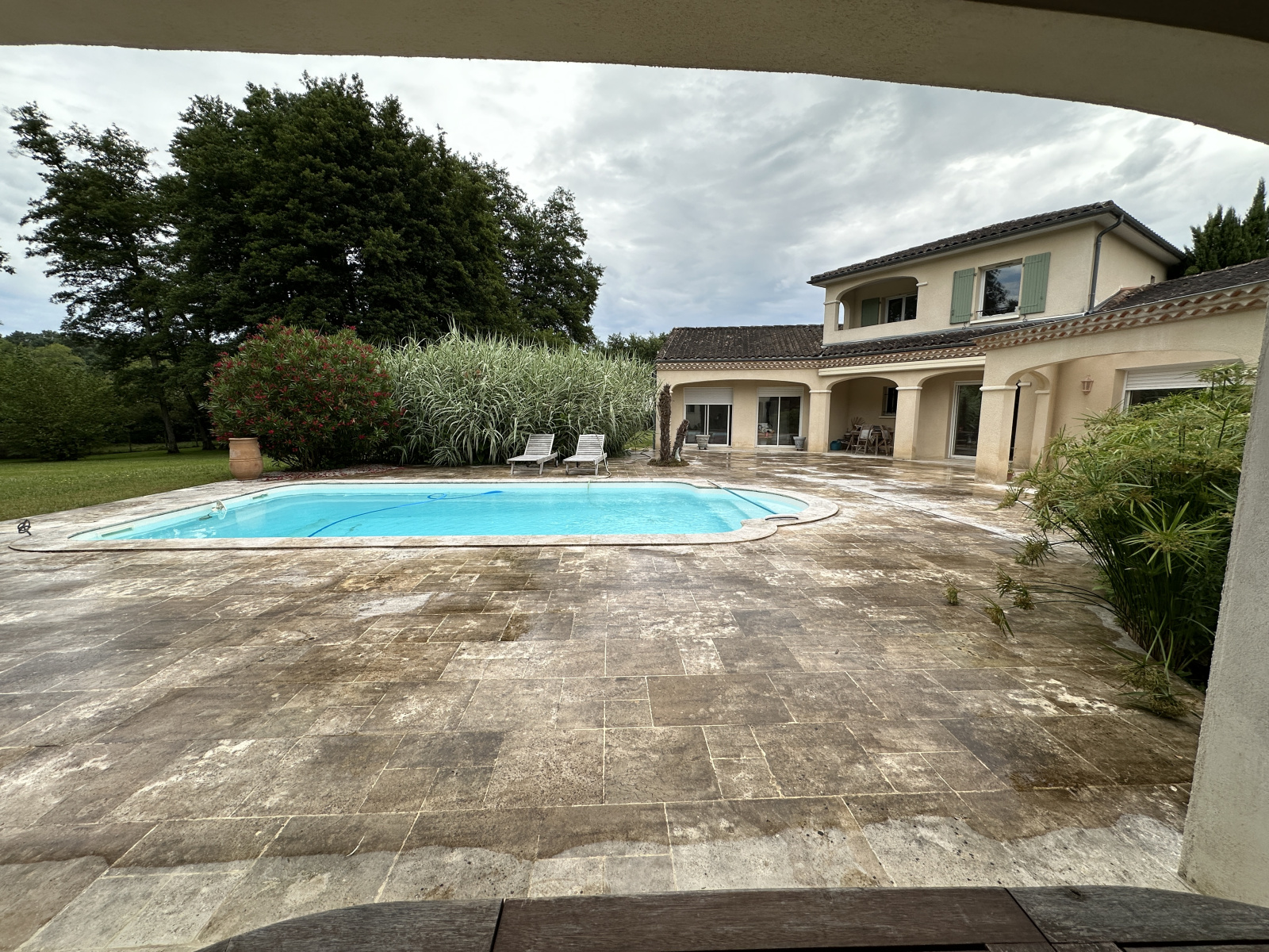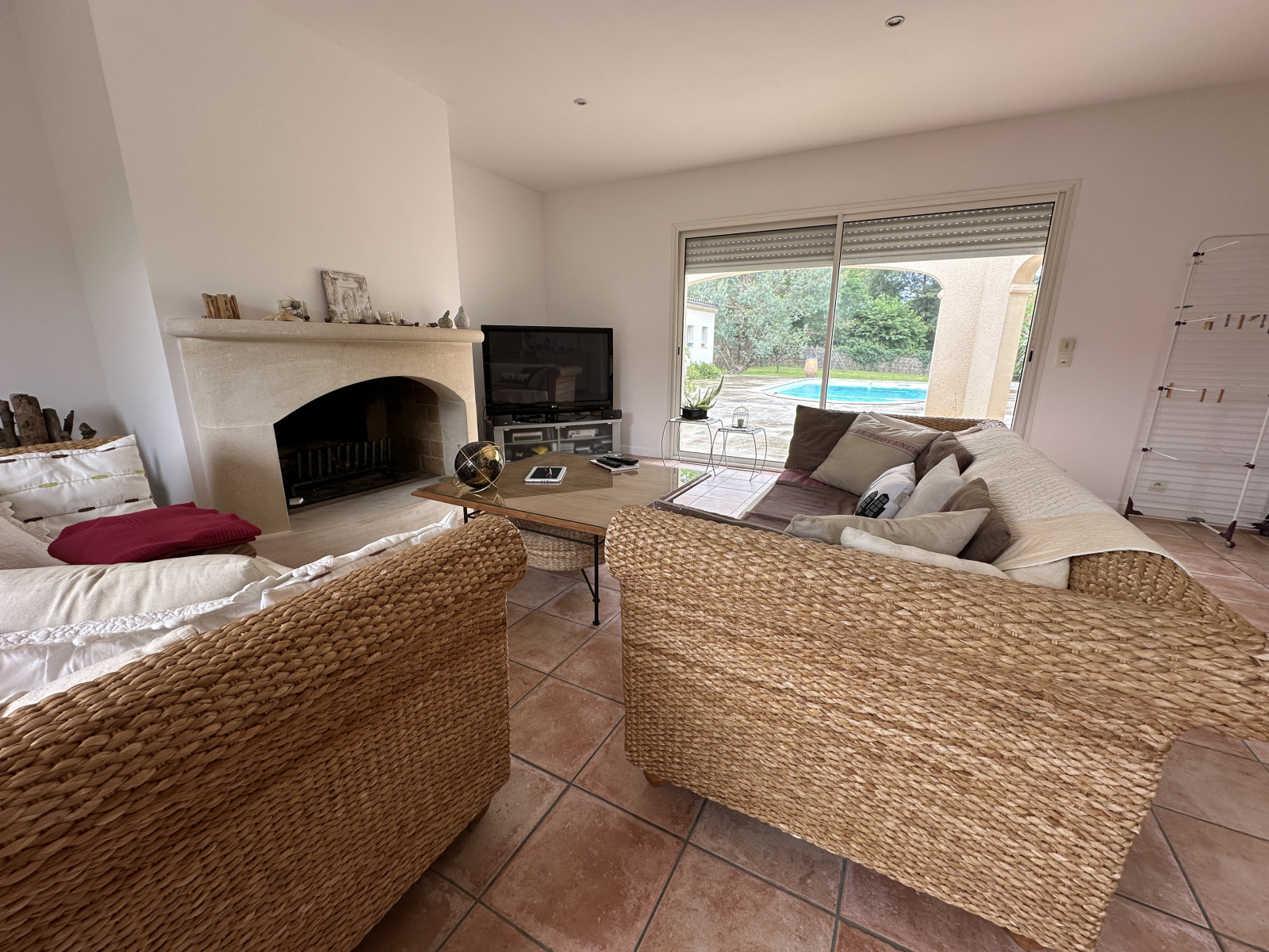 A l'extérieur, vous profiterez de la quiétude des lieux avec une terrasse en travertin de 200 m² environ entièrement carrelée avec une piscine de 9 x 4.20 au sel, un pool-house comprenant douche WC et terrasse couvertre.