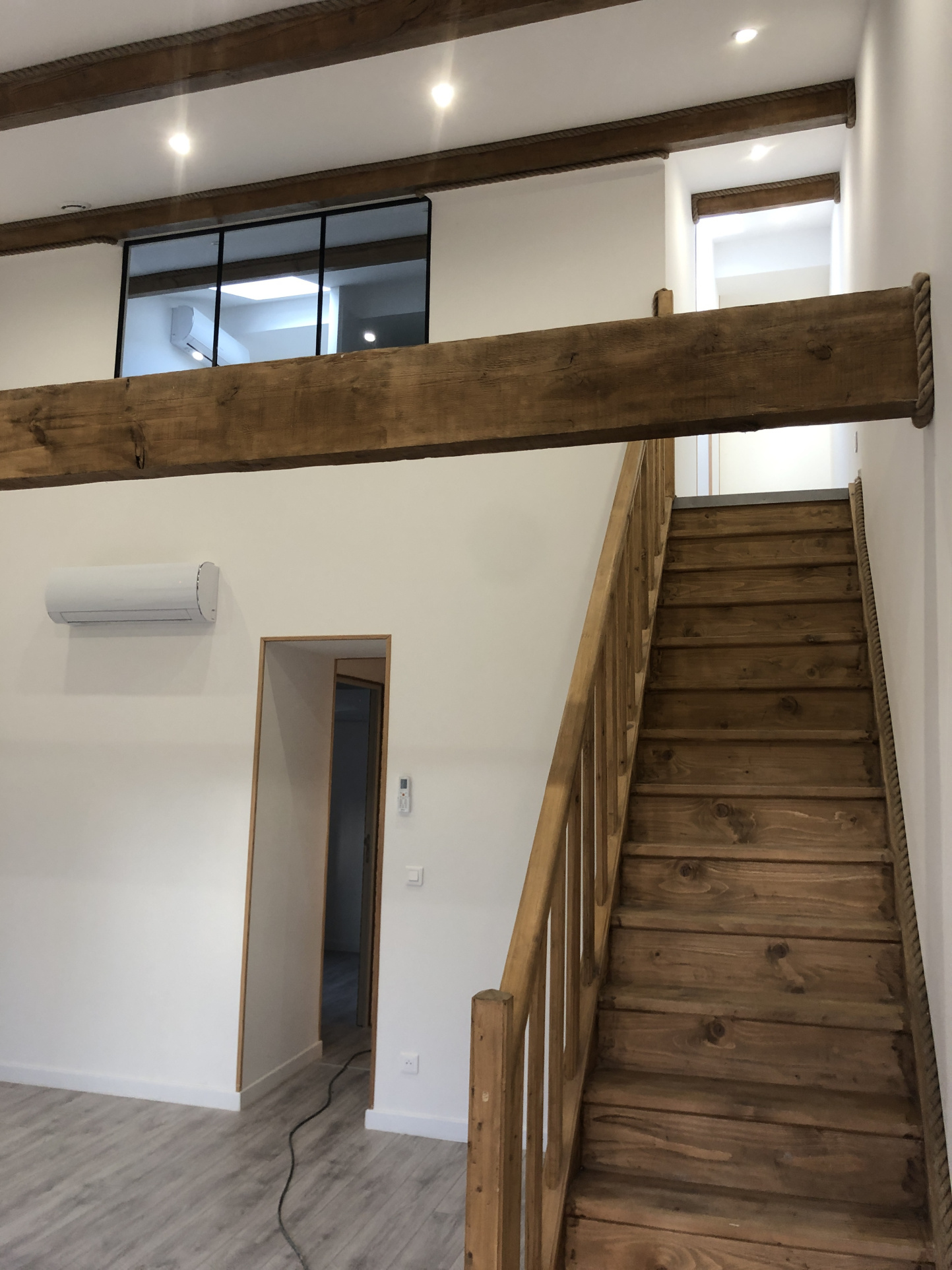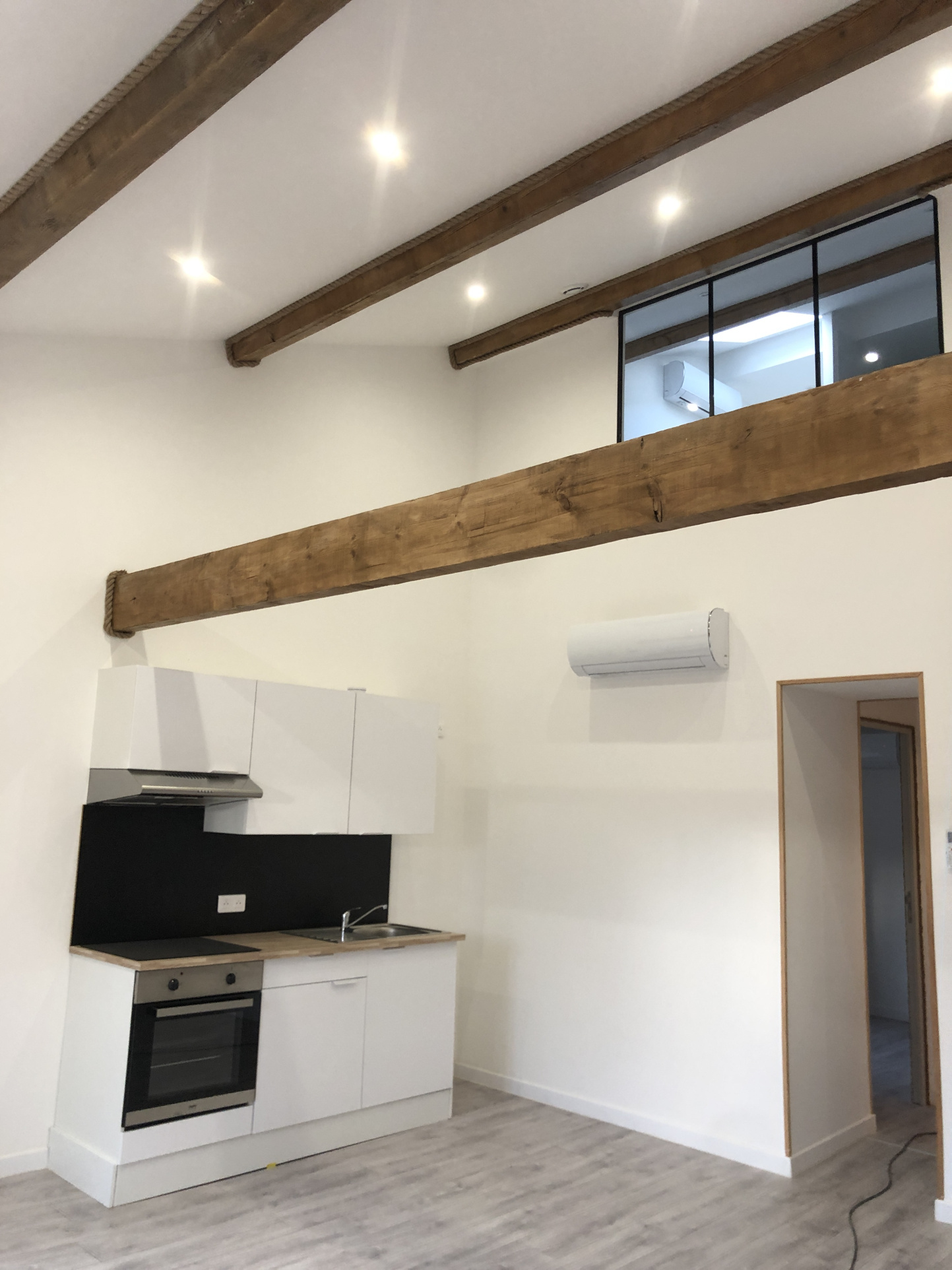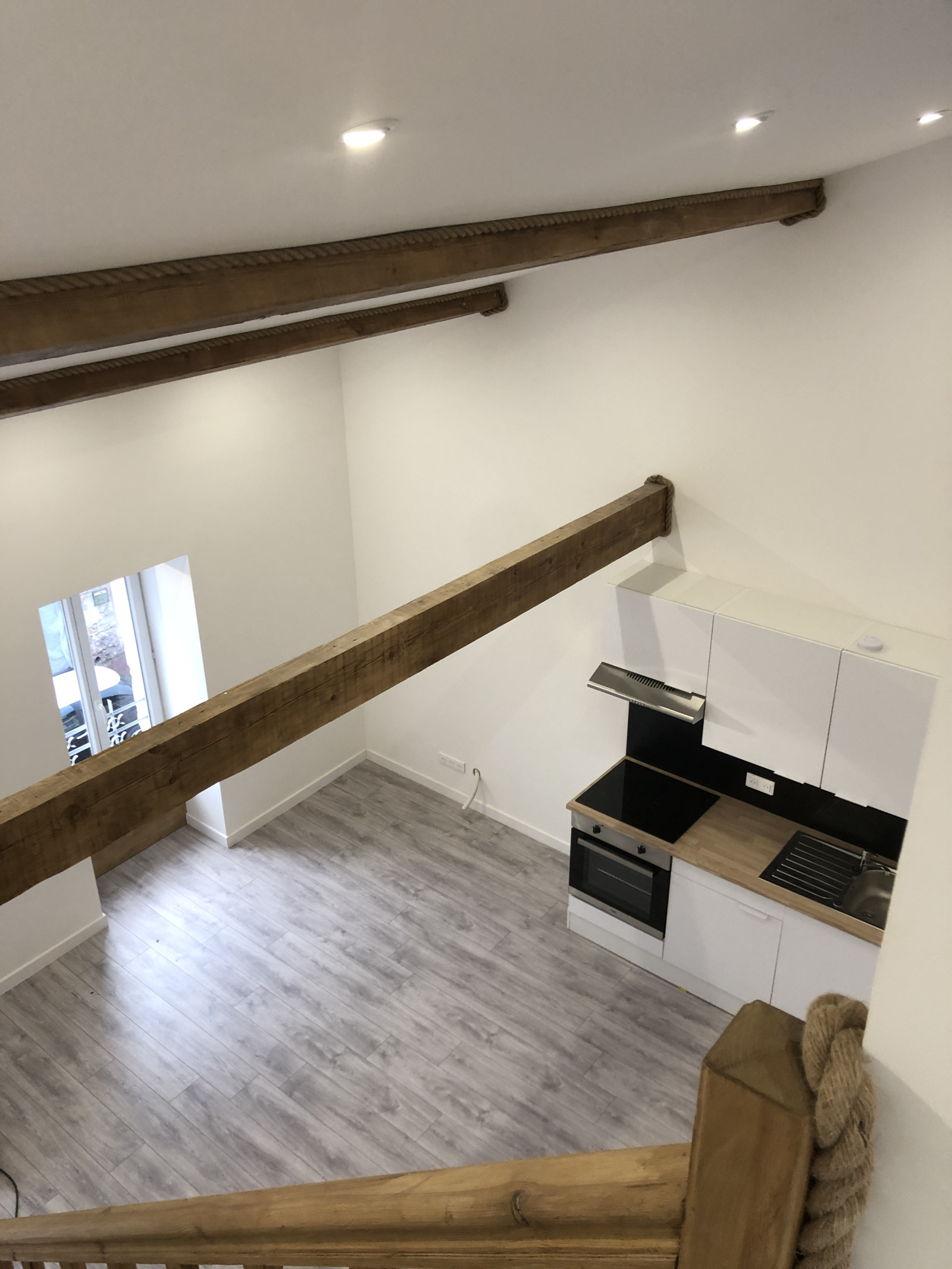 Sur la commune de RIBERAC, FCI IMMOBILIER SERVICE LOCATION vous propose, à deux pas du centre ville, un appartement duplex type T3 de 53m2 rénové à neuf, au second étage d'un immeuble de deux étages, comprenant une grande pièce de vie lumineuse avec un coin cuisine aménagée et équipée,un WC séparé, deux chambres avec chacune sa salle d'eau, un coin cellier donnant sur un accès jardin de +/- 50m².