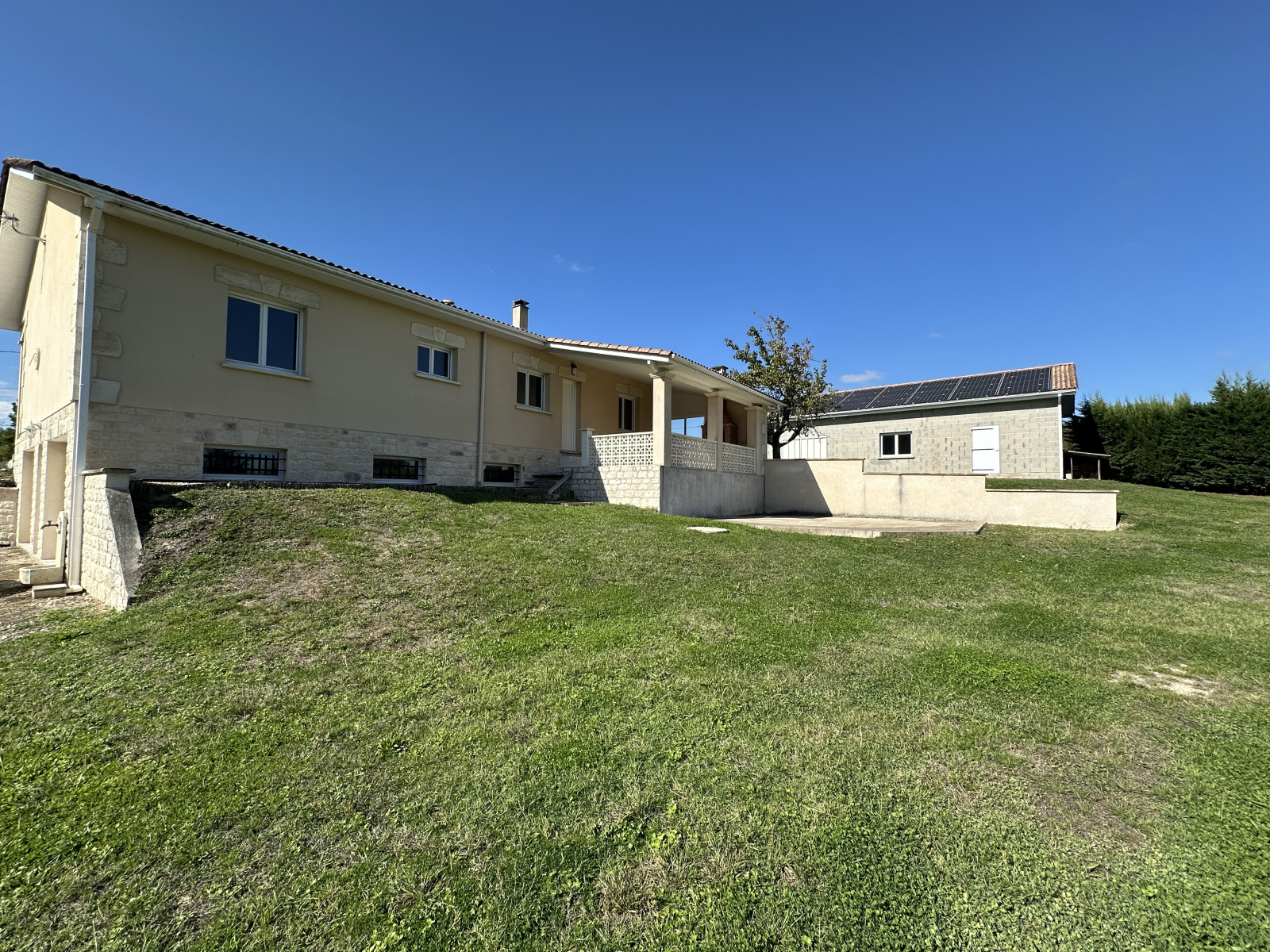 Votre réseau d'agences FCI IMMOBILIER : Venez découvrir cette ravissante maison de 102 m² construite en 2007 comprenant entrée avec rangement et accès au sous-sol de 125 m² permettant de garer 3 véhicules, cuisine séparée avec un accès à une terrase couverte de 23 m² qui vous permettra de partager d'agréables moments entre amis ou en famille. Le salon-salle à manger de 39 m² est équipé d'un insert et d'une climatisation réversible. La baie vitrée permet de disposer d'une pièce très lumineuse. Vous disposerez de trois chambres confortables équipées de placards. La salle d'eau vous ravira car en plus de la douche, vous disposerez d'une baignoire balnéo ! Le Wc est indépendant. Un autre garage indépendant de 75 m² permettra d'abriter votre camping-car. Ce dernier est équipé de panneaux photovoltaïques. Vous disposerez de deux portails pour un accès direct à la maison et un autre au garage indépendant. Le terrain est arboré et entièrement clos. De nombreux arbres fruitiers vous régaleront : chataigniers, cerisiers, mirabellier, poiriers, figuiers. Une mare ainsi qu'un puits raviront les adeptes du potager ! N 'attendez pas pour réserver votre visite avec Valérie GUYONNET au 06.76.66.29.33.