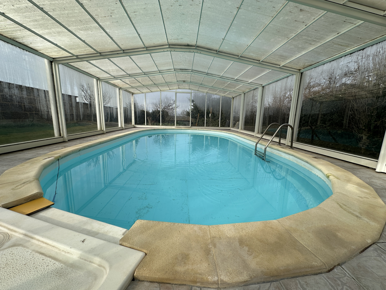 A l'extérieur, profitez de la quiétude des lieux avec jardin donnant vu sur la campagne, une piscine avec un dôme et un puits fonctionnel.