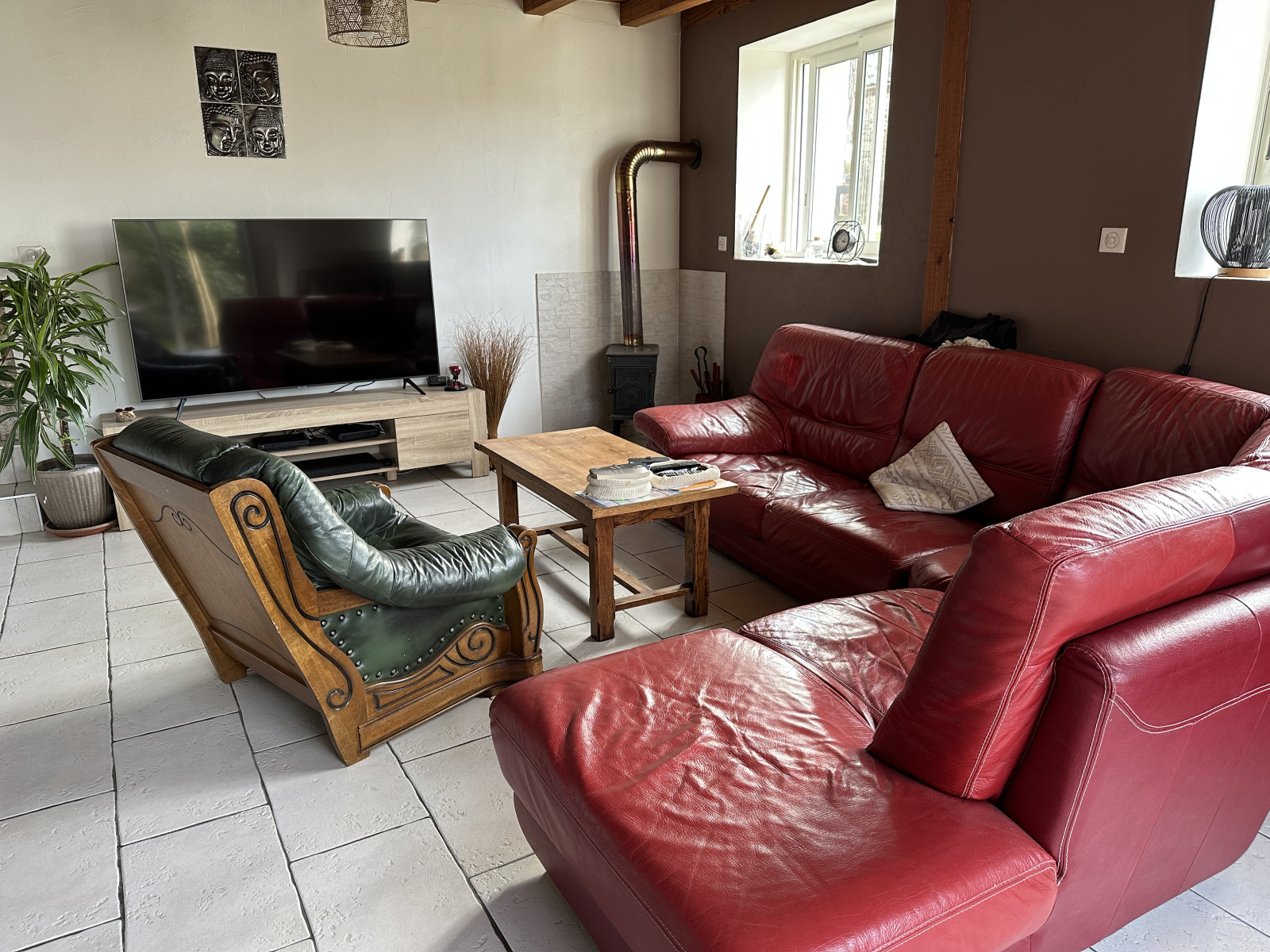 Située au cœur du village, maison en pierres comprenant un séjour de 30m² environ avec poêle à bois, une cuisine séparée de 12 m², une salle de bains, un salon de 26m² environ avec poêle à bois donnant accès sur le jardin, une salle d'eau et WC séparé.