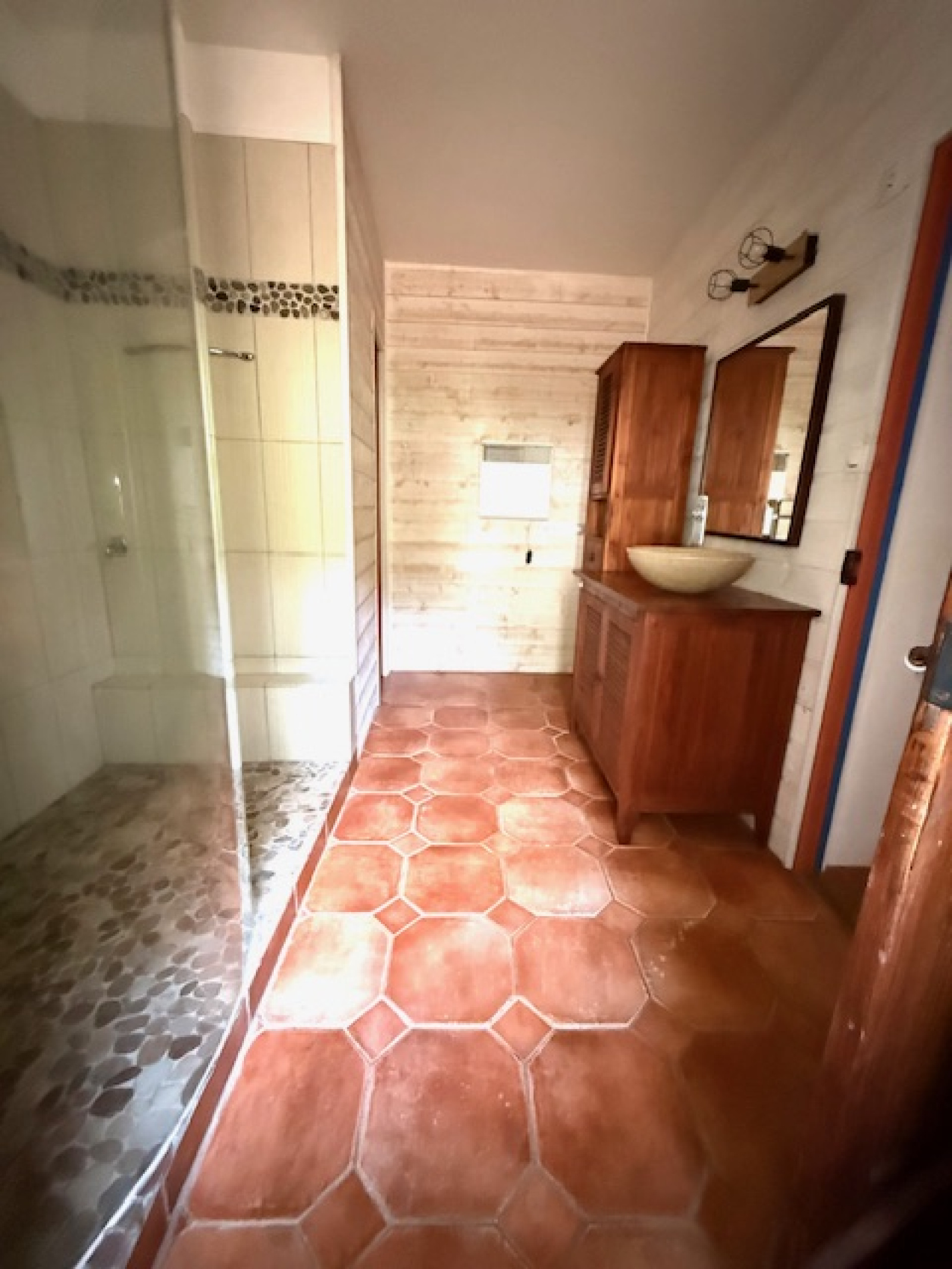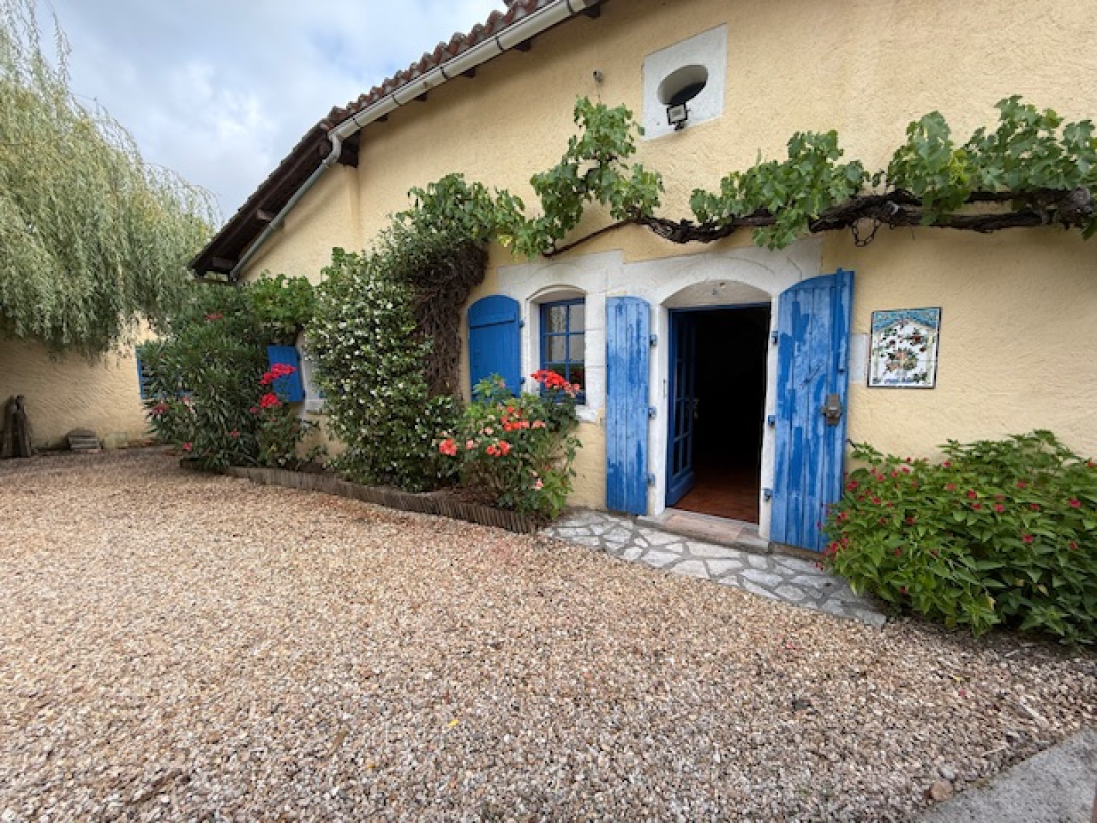 Amoureux de la nature et de calme, vous serez heureux de profiter de l'exterieur avec un grand preau et son four à pain donnant sur le jardin et ses dépendances en bois.