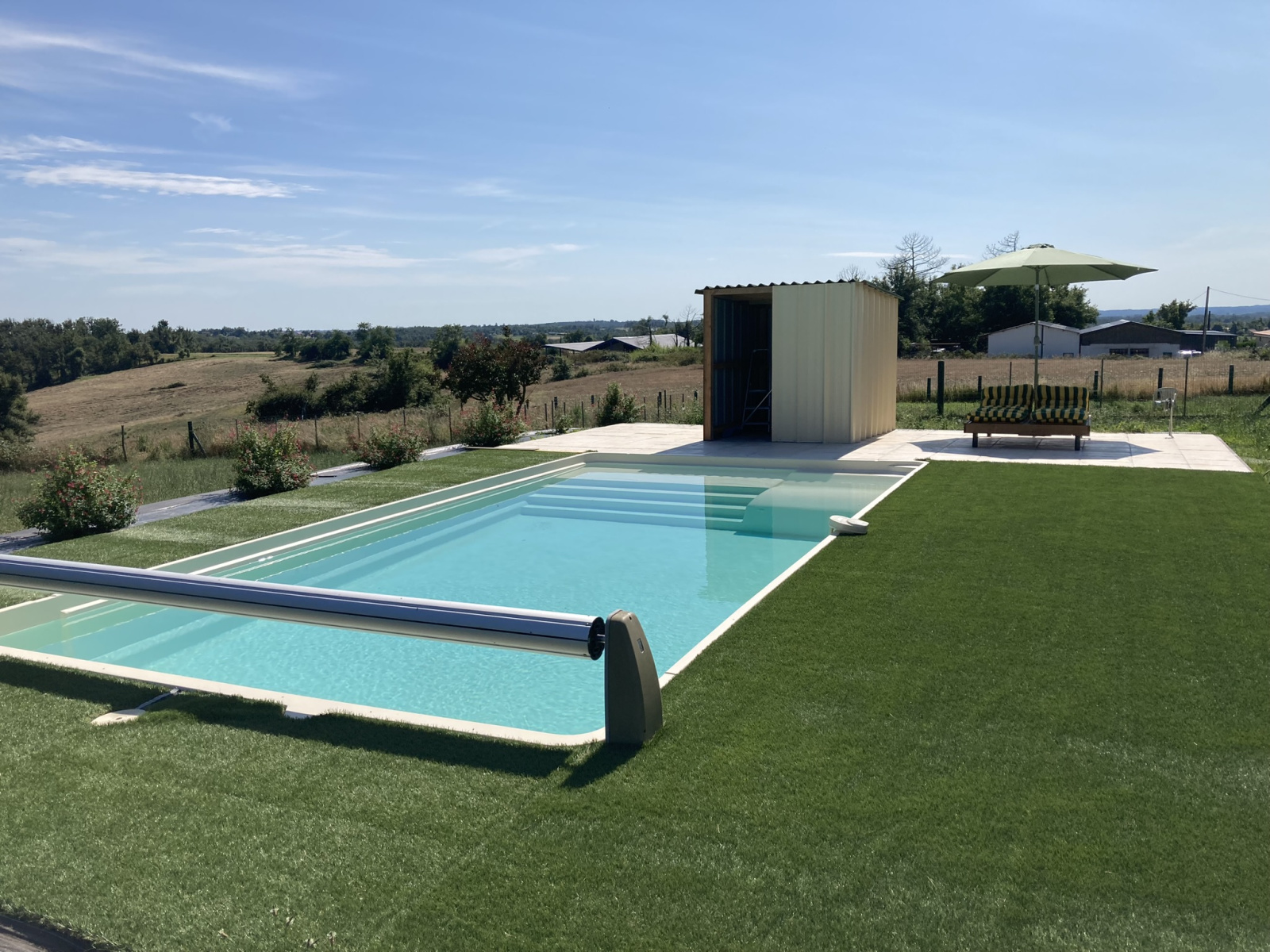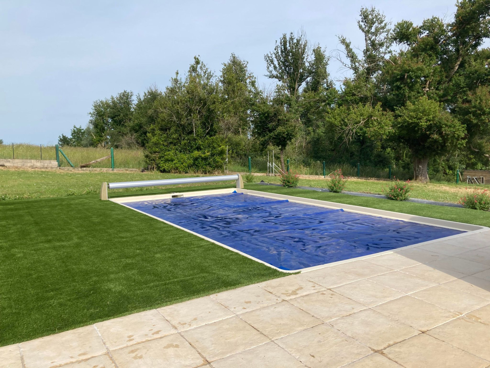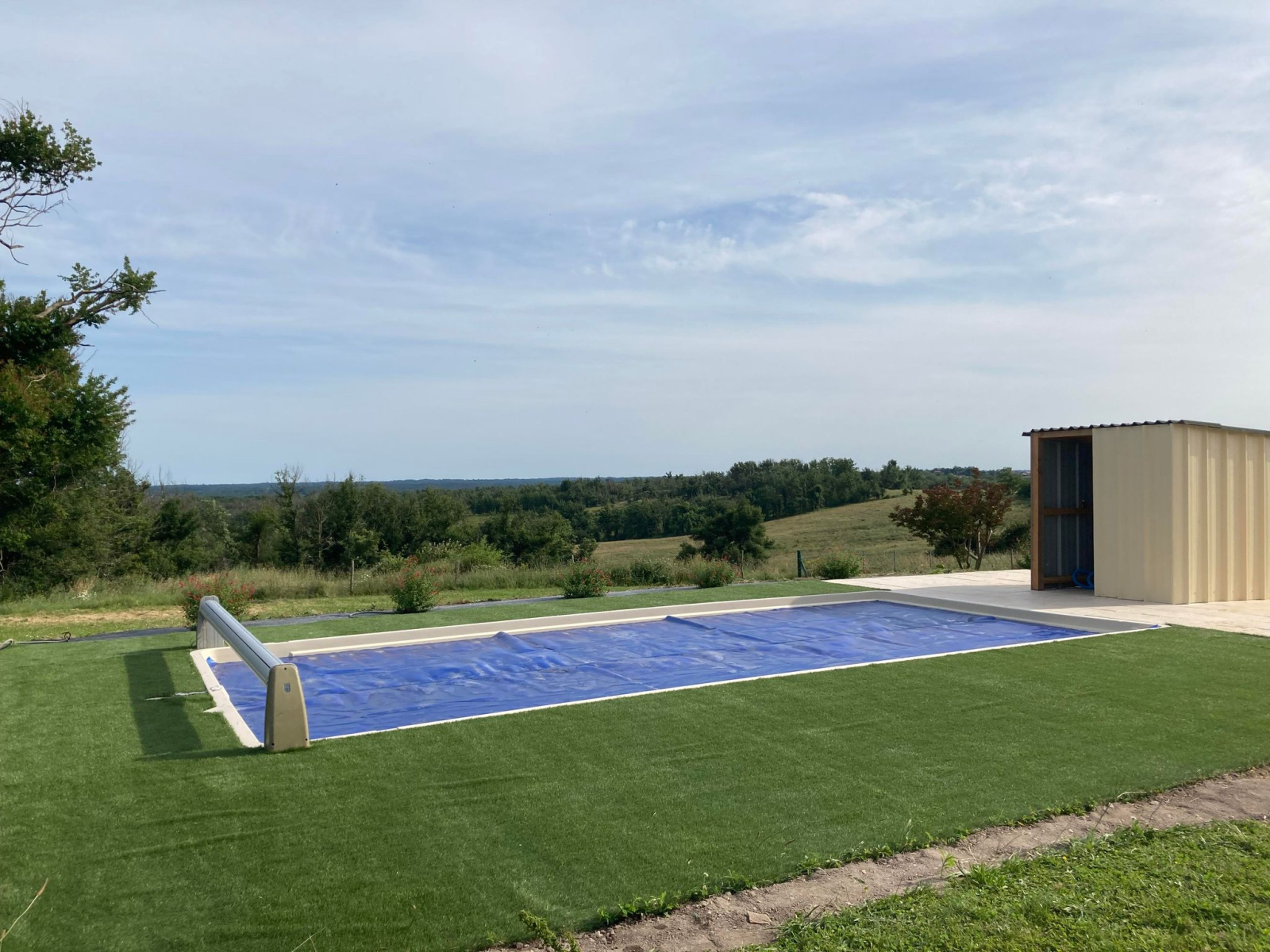 A l'extérieur vous aurez accès à un terrain arboré et clos d'environ 4 600 m2 avec une psicine, une cuisine d'été à finir de créer, un double garage pour garer vos véhicules à l'abri, une dépendance avec un ancien four à pain en pierres à rénover, un puit fonctionnel et un abri de jardin.