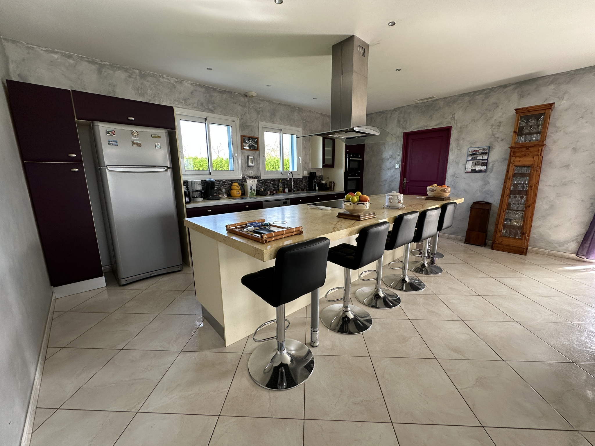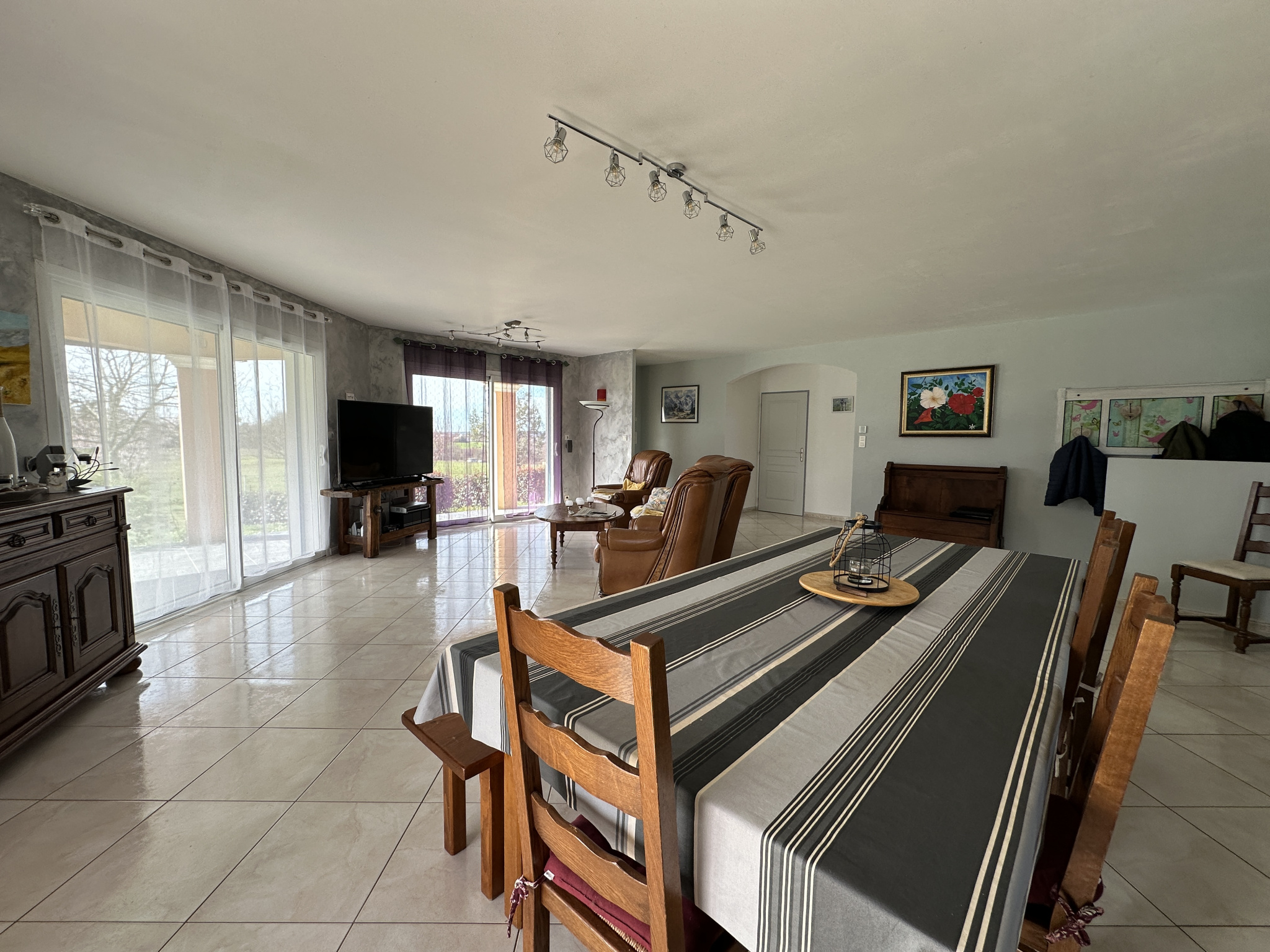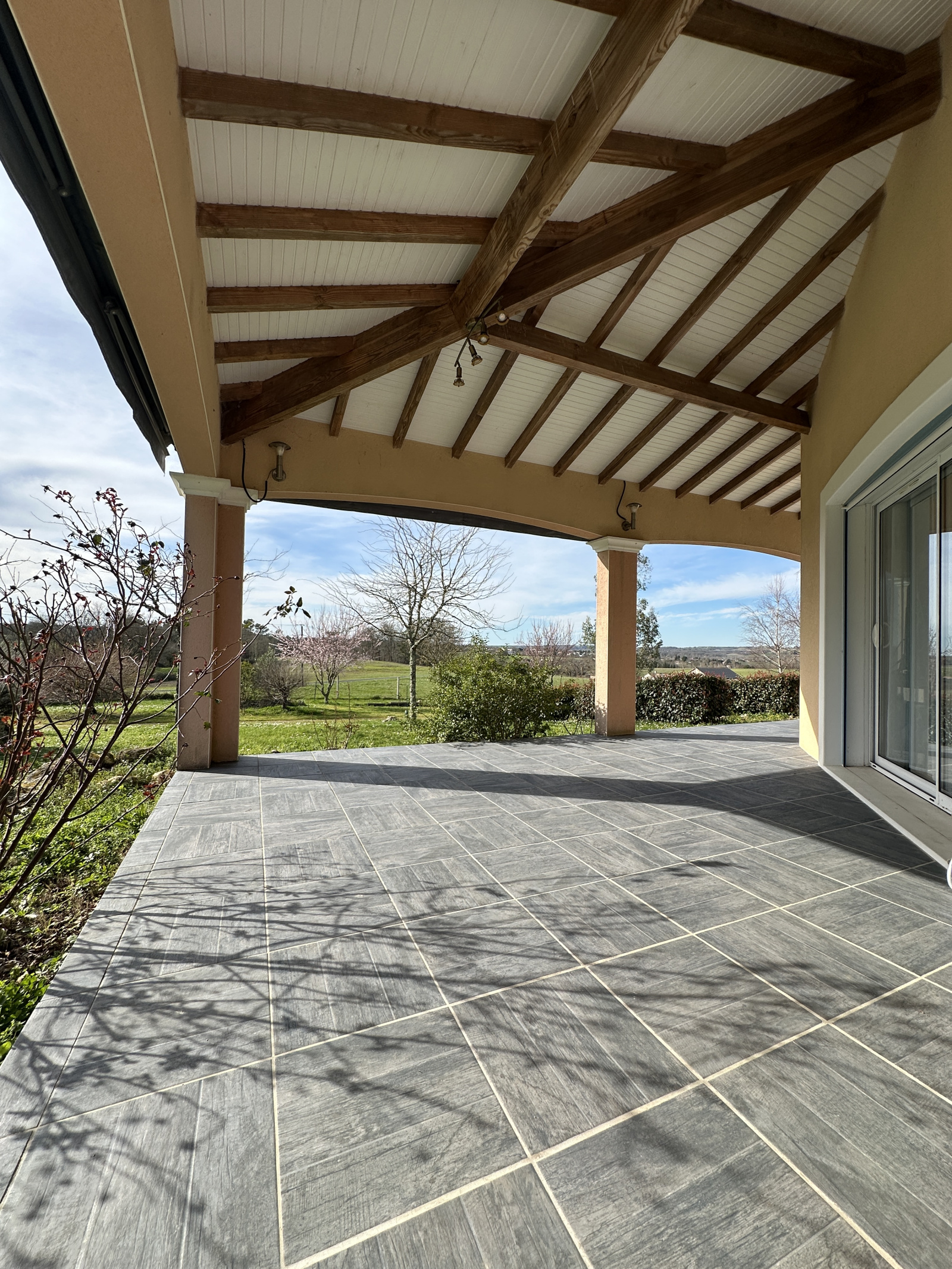 À l’extérieur, vous profiterez d’une terrasse d’environ 40 m², entièrement carrelée et équipée d’un barbecue, parfaite pour les repas en plein air et les moments de détente.