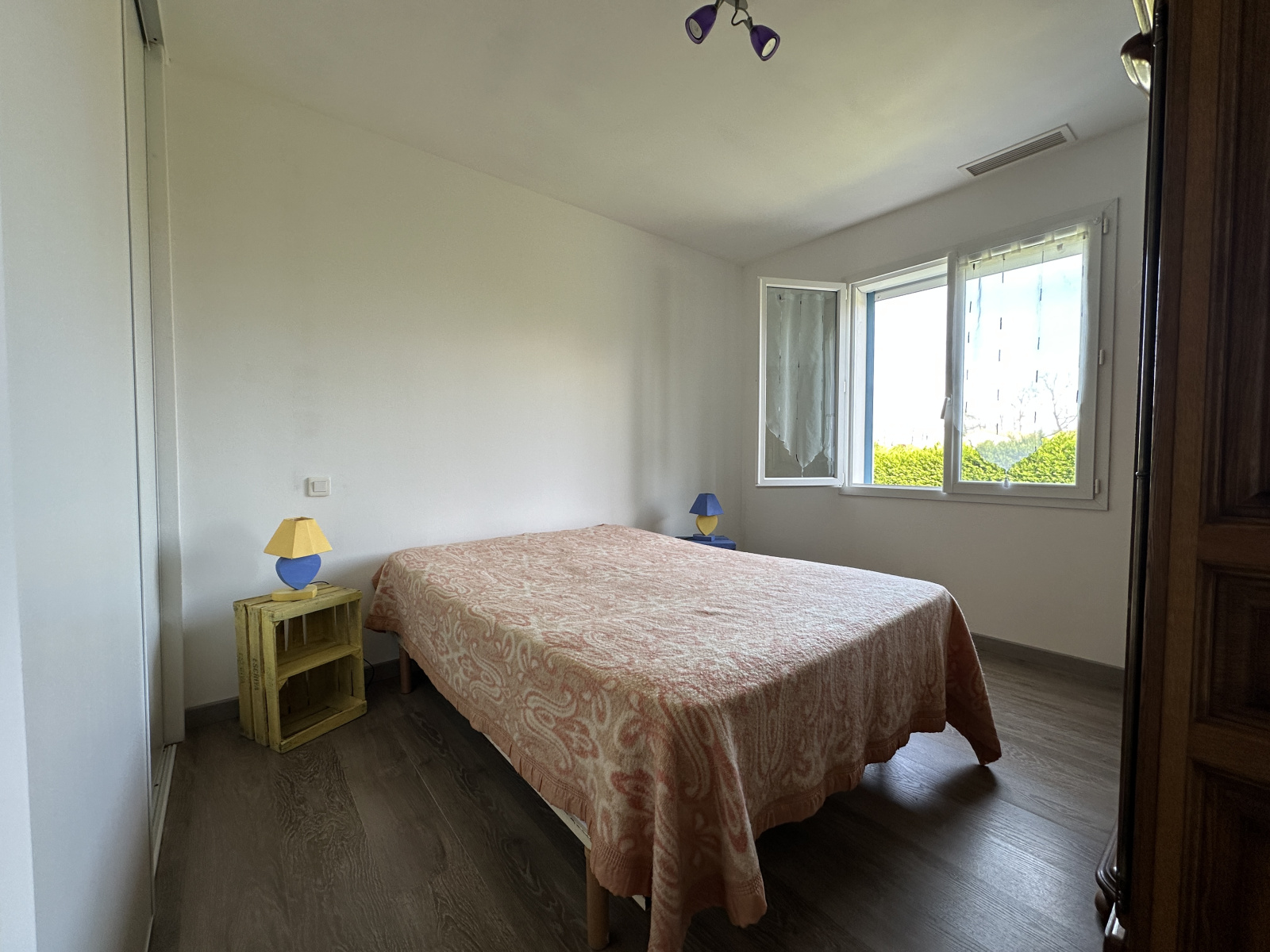 L’espace nuit se compose de quatre chambres, dont une suite parentale disposant de son propre dressing et de sa salle d’eau avec WC, ainsi qu’un balcon privatif offrant une vue apaisante sur la campagne. Une seconde salle d’eau commune est à disposition pour les autres chambres, ainsi qu’un WC indépendant pour plus de confort au quotidien.