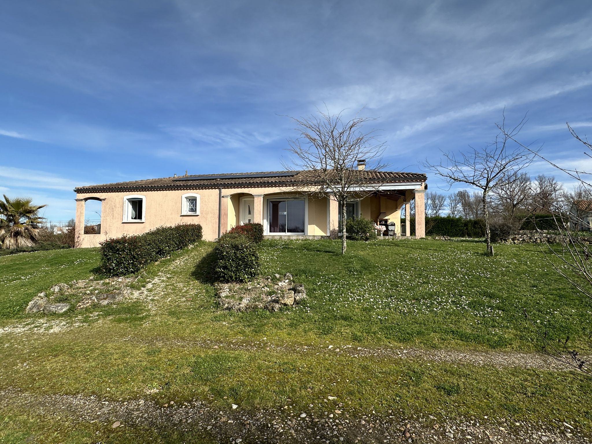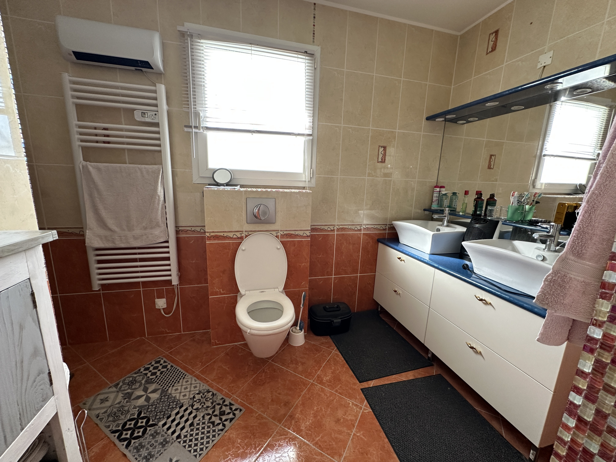 Côté équipements, la maison bénéficie d’un chauffage par climatisation réversible gainable, d’un chauffe-eau solaire et de volets roulants, assurant confort et performance énergétique tout au long de l’année.