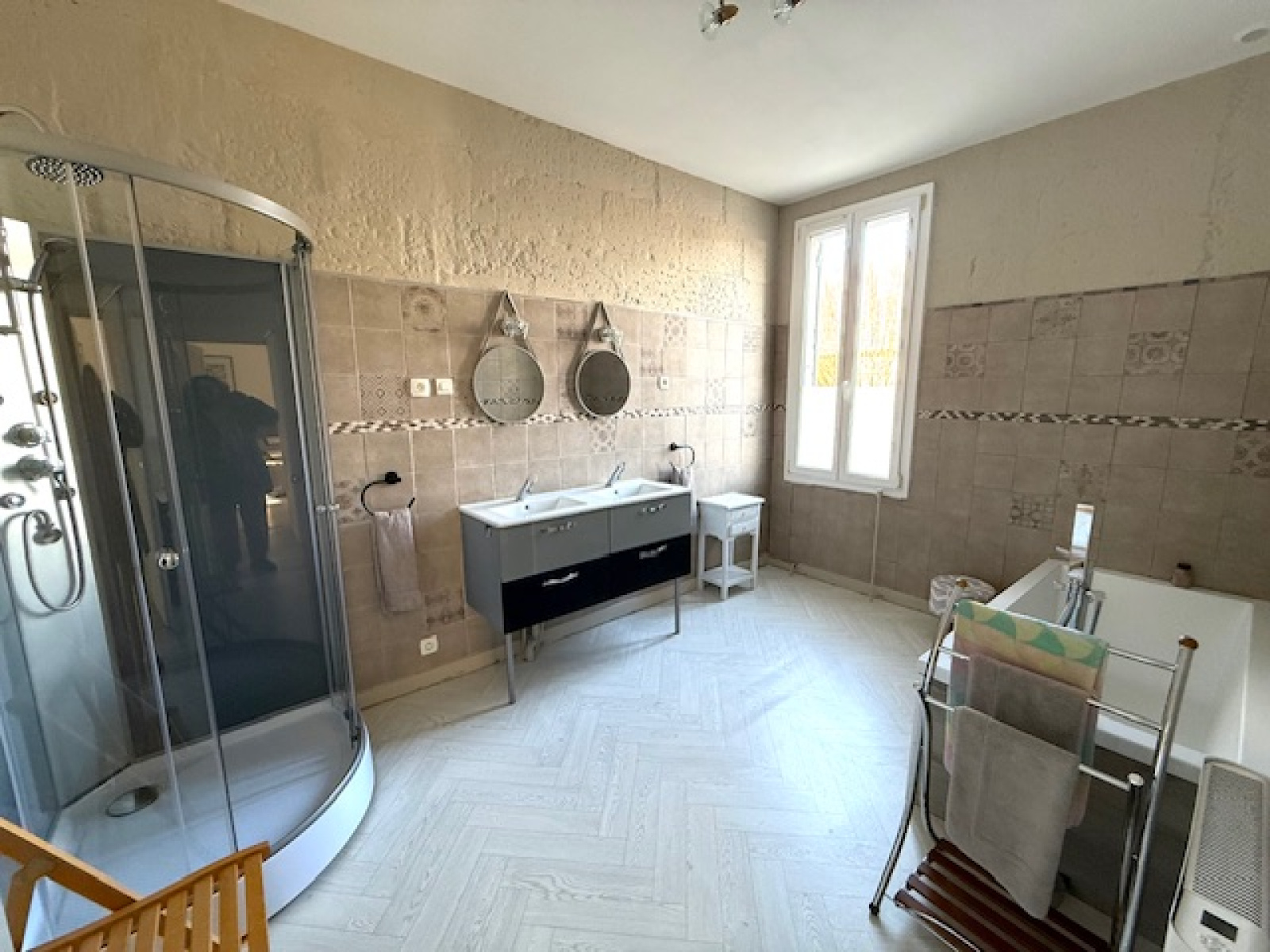 Un appartement comprenant cuisine, chambre (20 m2), salle de bains avec douche, WC, dressing et à l'étage une seconde chambre complète de plain pied ce bien tout en ayant son entrée indépendante si l'on souhaite un rapprochement familial ou un rendement locatif.