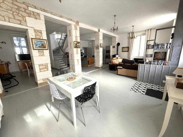 FCI Immobilier vous propose cette maison des années 1900 en plein centre de CHALAIS avec toitures neuves, composée d'une cuisine équipée avec ilot central ouverte sur vaste salon/séjour avec poele à granules de plus de 80m2 , au premier étage 3 chambres (14, 16 et 16 m2), salle d'eau avec dressing, WC et au second étage un grenier aménageable.
