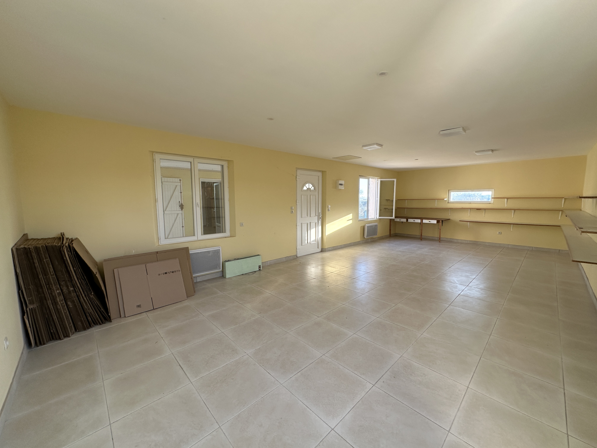 La maison principale se compose d’une pièce de vie lumineuse avec cuisine semi-ouverte, idéale pour les moments de convivialité, de trois chambres, d’une salle d’eau et de WC séparés. Une terrasse couverte invite à la détente en toute saison.