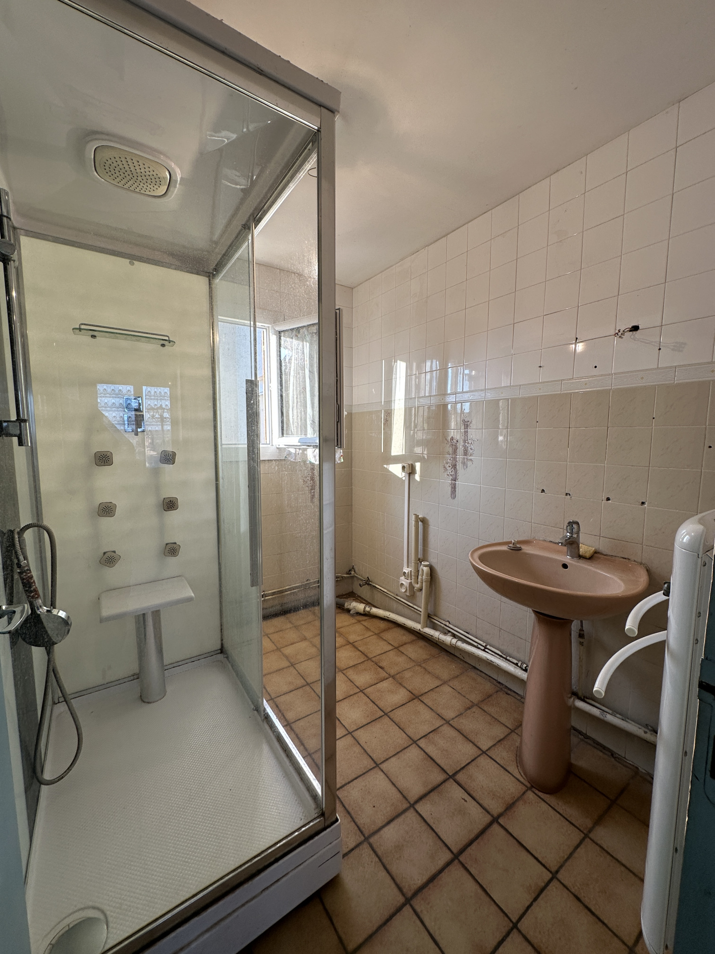 Le bien dispose également d’un garage carrelé, comprenant une cave et une pièce supplémentaire pouvant servir de chambre, de bureau ou de salle de loisirs.