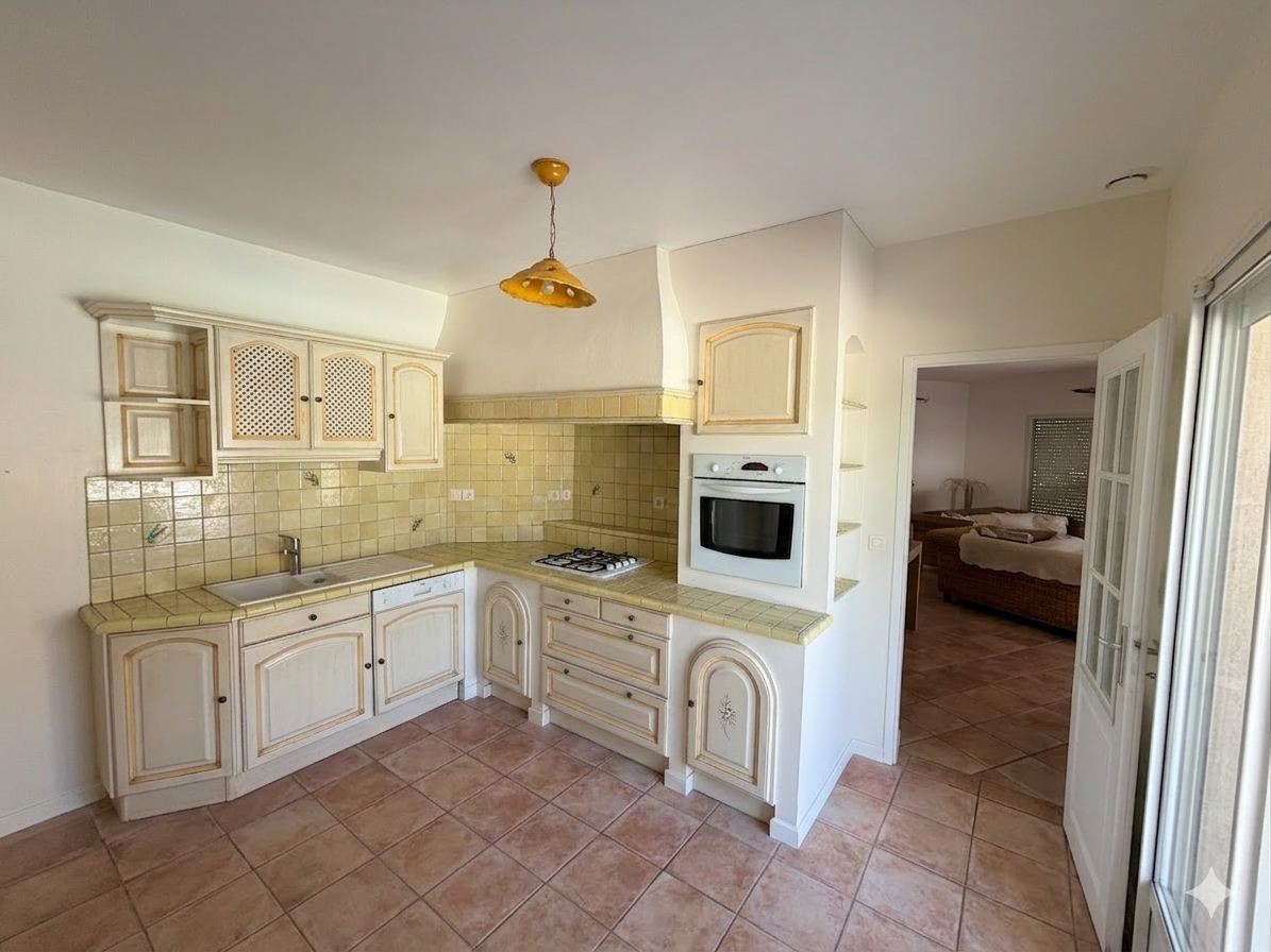 Votre réseau d'agences FCI IMMOBILIER vous propose cette maison de 2001 de style provençale, composée en rez-de-chaussée d'une entrée de 16m², une cuisine séparée et équipée donnant accès sur l'agréable parc arboré, un spacieux salon-salle à manger de 50m², une buanderie, deux chambres de 16 et 13m², une salle de bains avec douche, baignoire et double vasques, un dressing et double garages attenant !