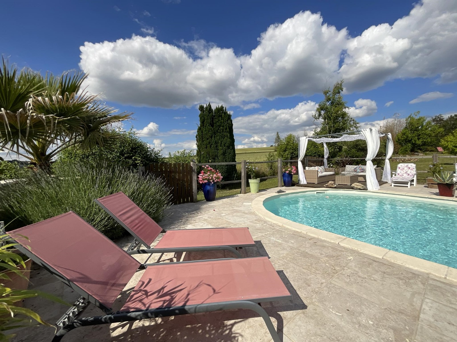 Jardin avec piscine et pool house. Terrasse avec coin barbecue pour profiter des belles soirée d'été.