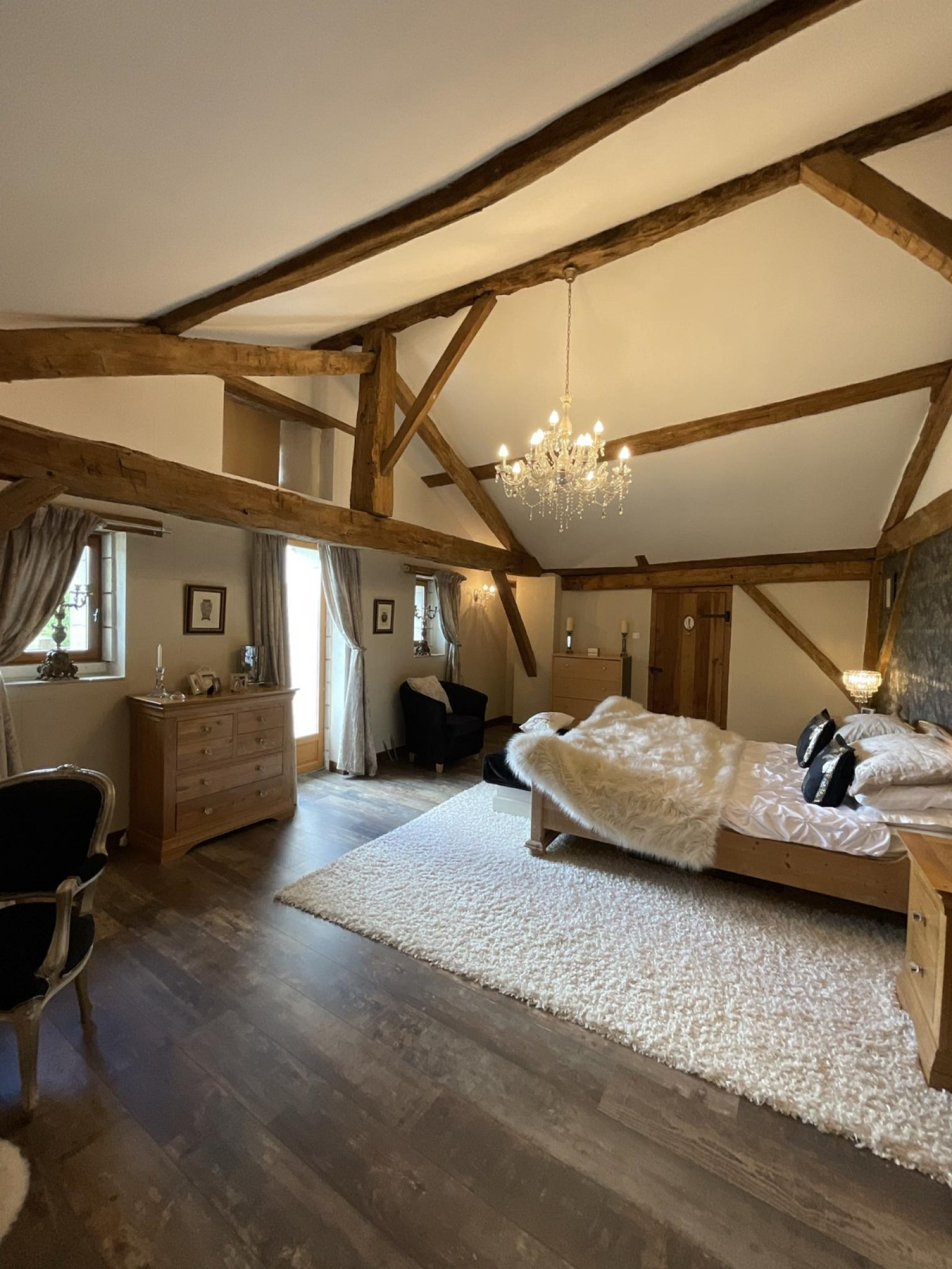 5 chambres, une suite parentale avec salle de bains et dressing, salle de sport, magnifique séjour avec chauffage au bois.