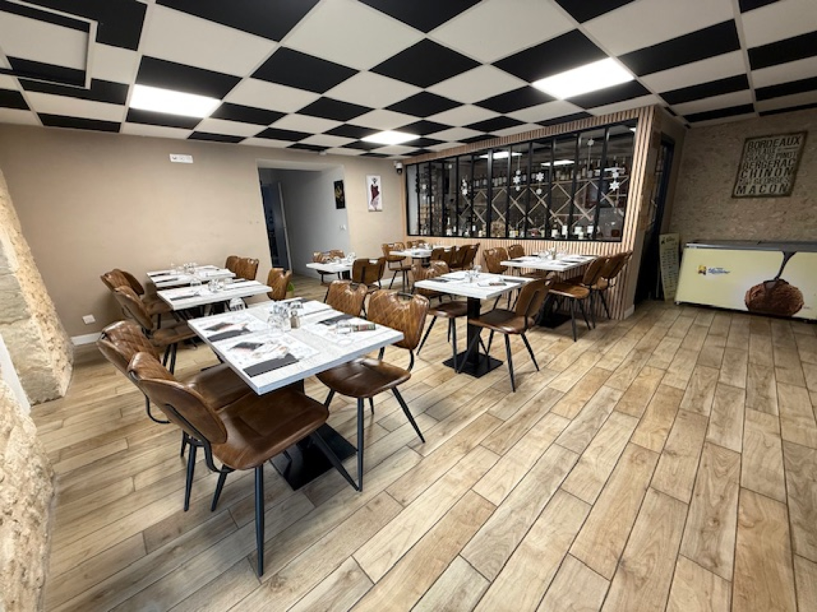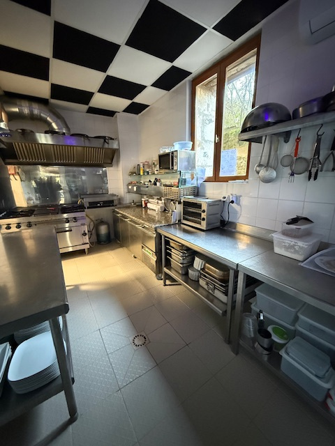 Surface commerciale sur 1 niveau – cuisine professionnelle et fonctionnelle, salle de restaurant/bar de 50 couverts, terrasse de 60 couverts.