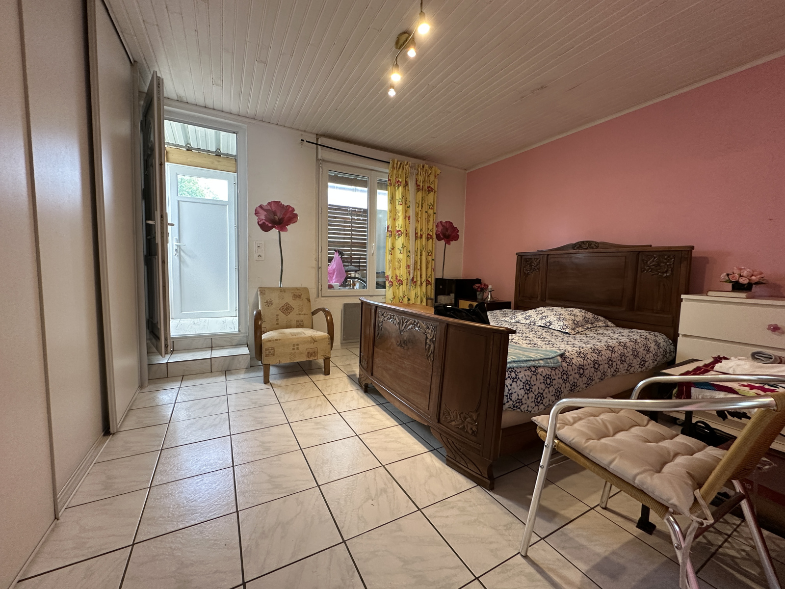 En rez-de-chaussée, vous profiiterez d'une agréable cuisine, suivie d’une chambre avec placards intégrés et une véranda pouvant servir d'espace de stockage.