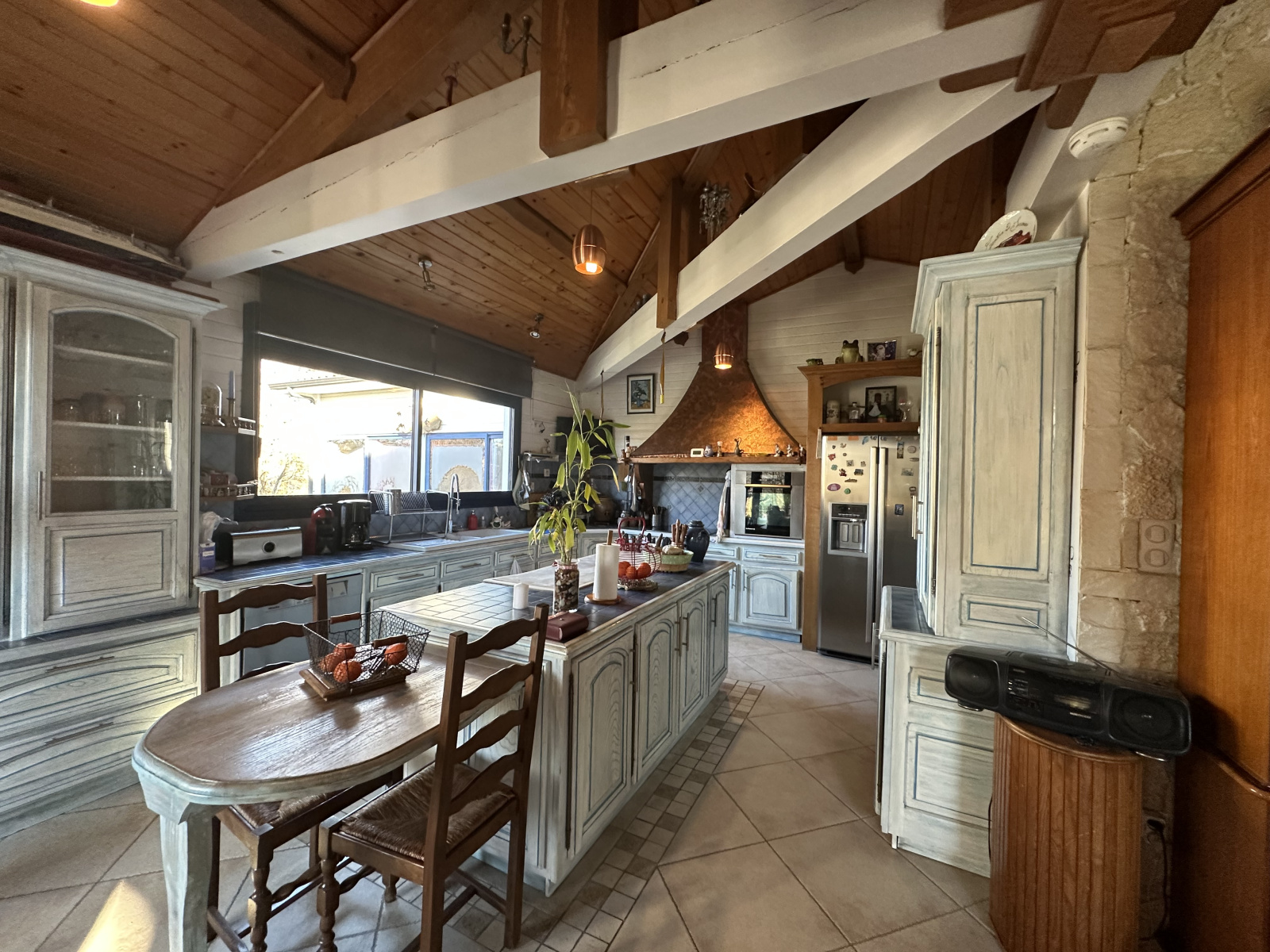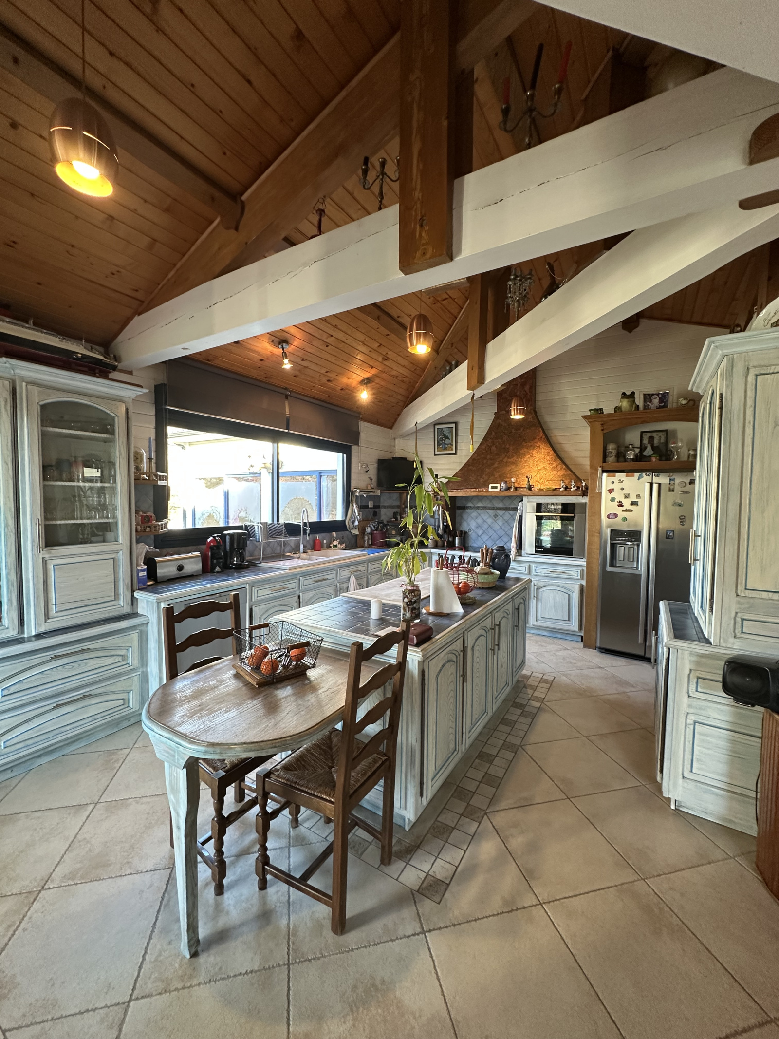Enfin, pour compléter ce niveau, une cuisine d'été avec barbecue vous attend pour de délicieux repas en extérieur pendant les mois plus chauds. Cet espace extérieur est parfait pour recevoir vos invités ou passer des moments conviviaux en famille. Elle est également équipée de baies vitrées.