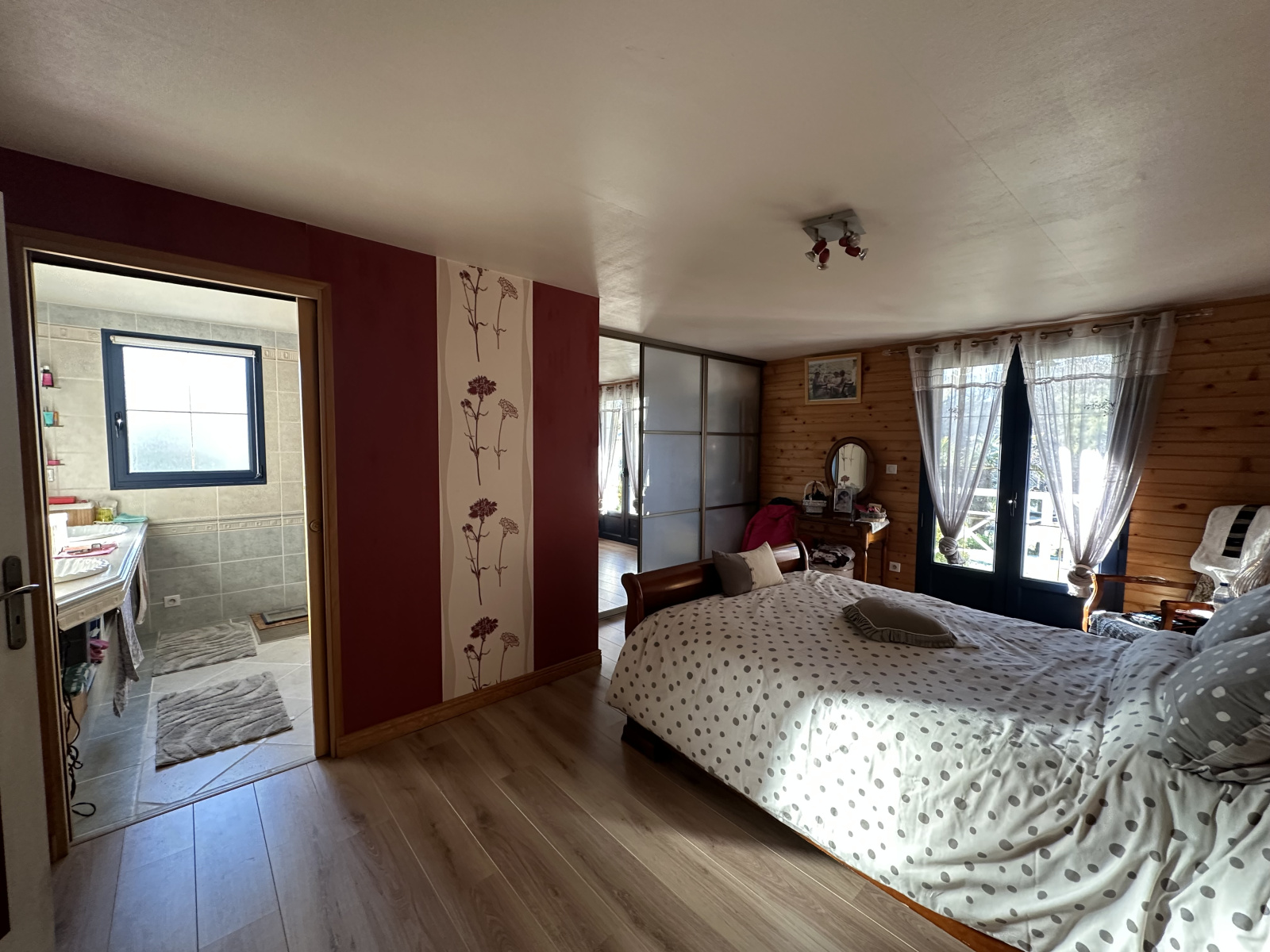 À l'étage : vous découvrirez deux chambres spacieuses, chacune dotée de son balcon privatif, offrant une belle vue sur l'environnement verdoyant. Cet espace intimiste vous permet de profiter d’un véritable havre de paix. Une salle d'eau communicante entre les deux chambres ainsi qu’un WC indépendant assurent un confort optimal pour toute la famille.