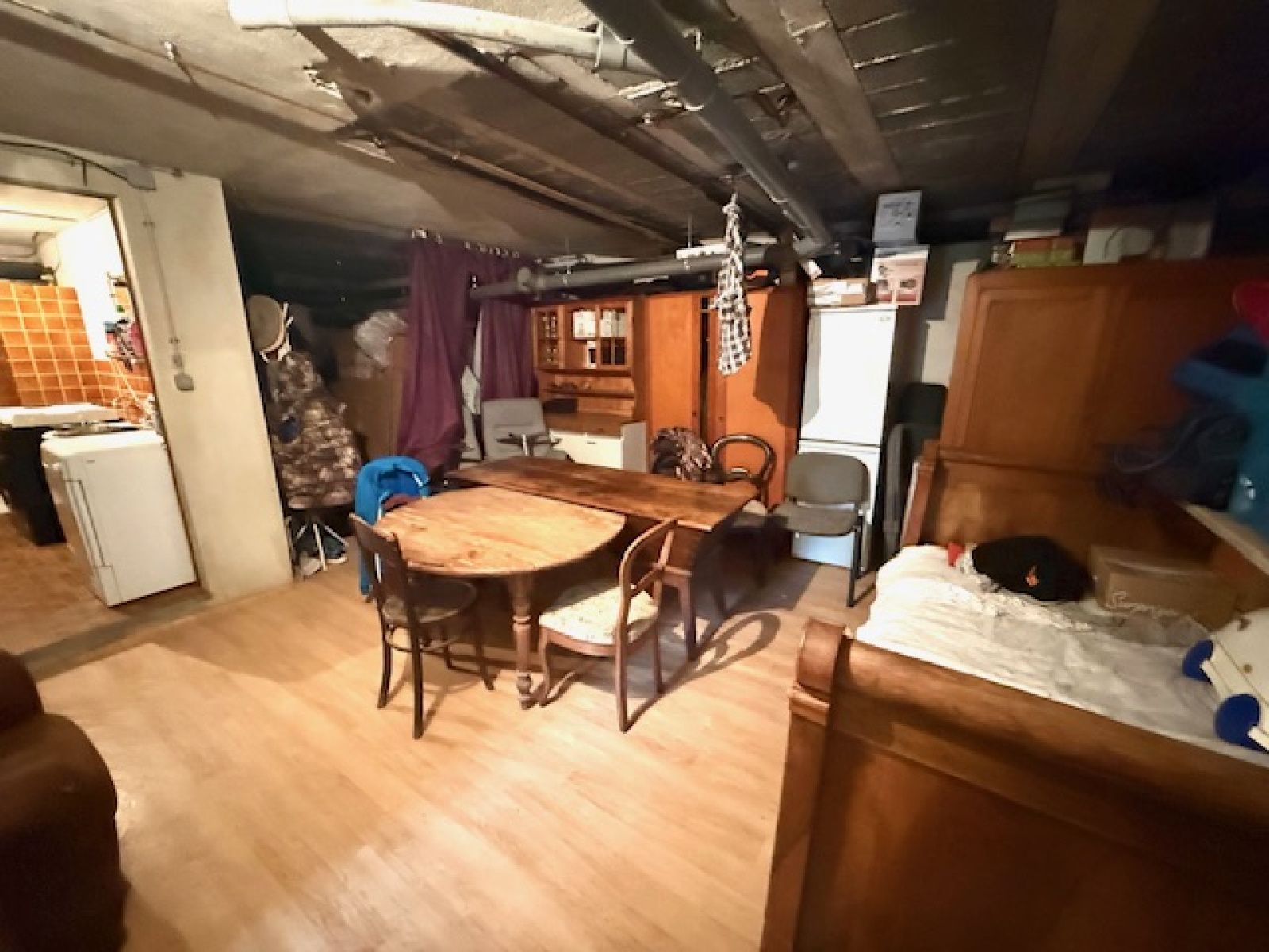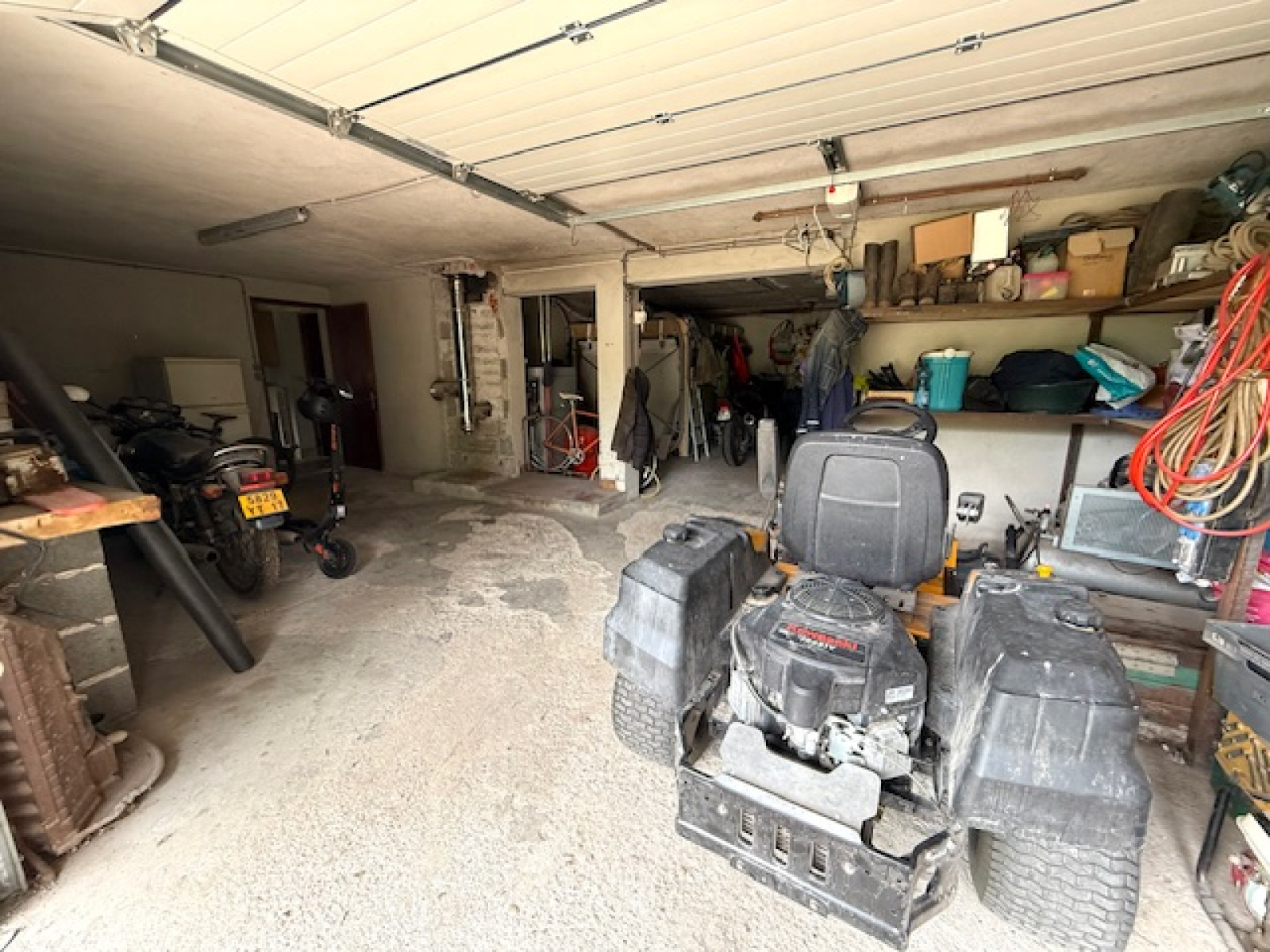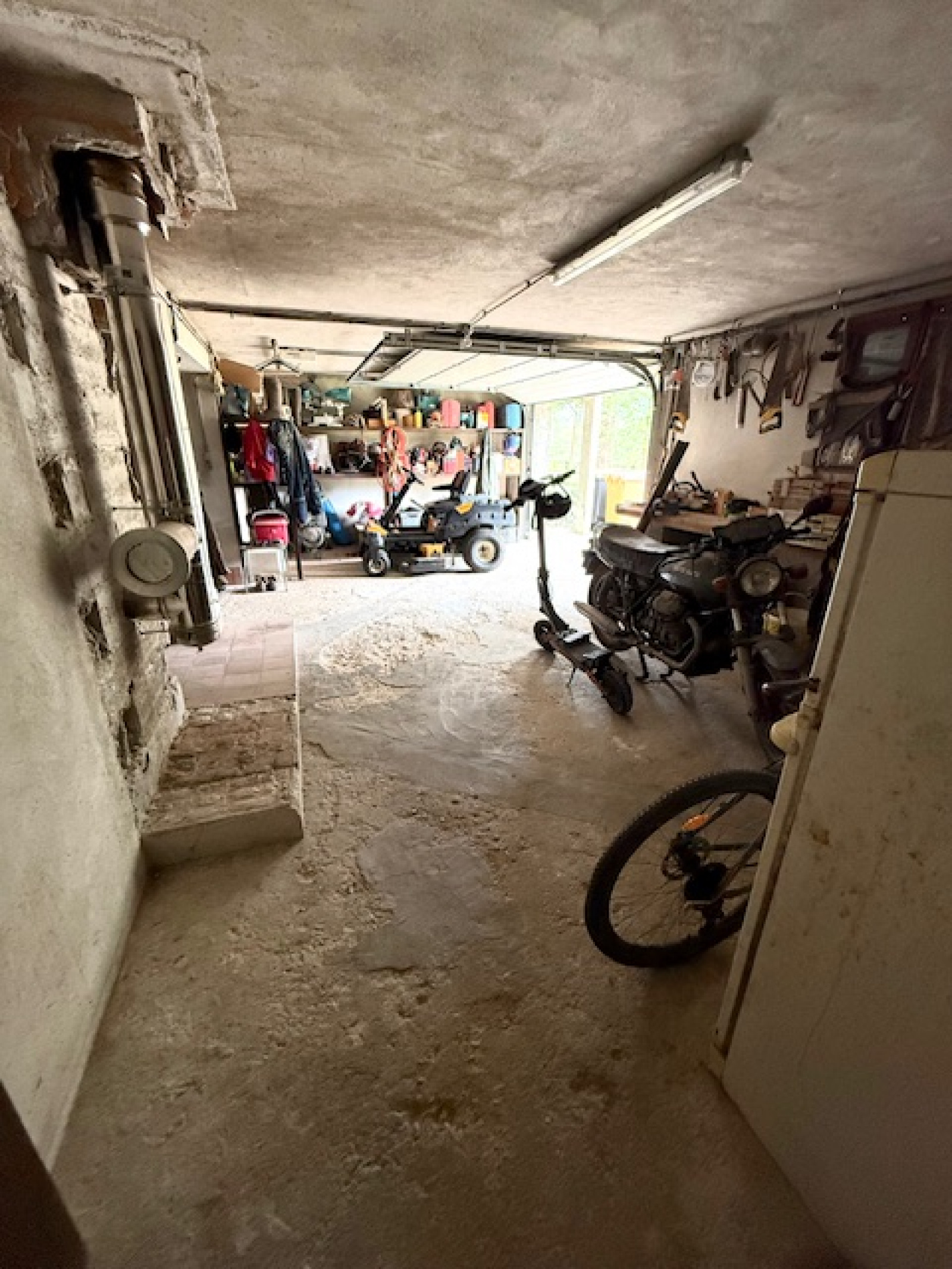 Dans le sous sol un garage de 60 m2 avec chaudière à granules et son silot, ancienne cuisine, autre pièce et salle d'eau avec WC.