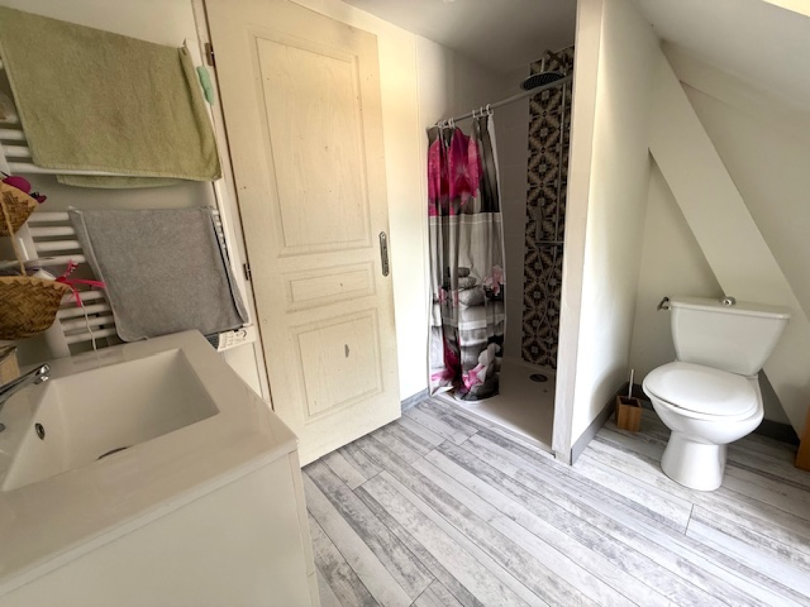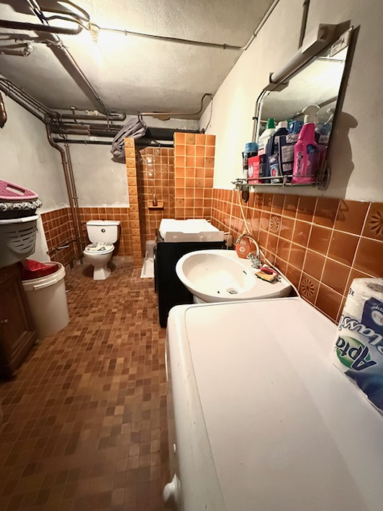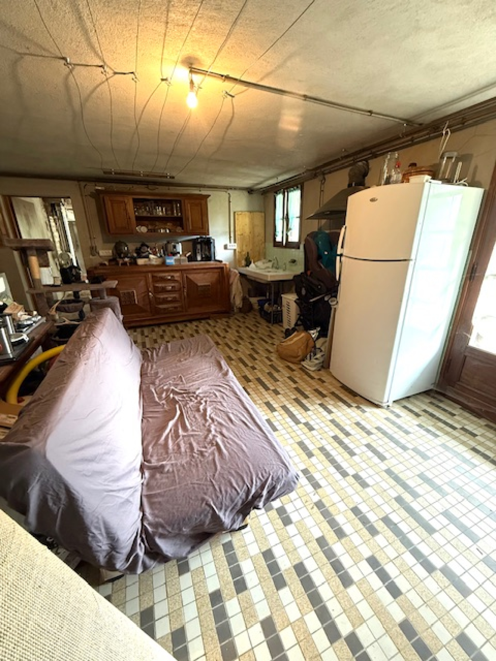 Dans le sous sol un garage de 60 m2 avec chaudière à granules et son silot, ancienne cuisine, autre pièce et salle d'eau avec WC.