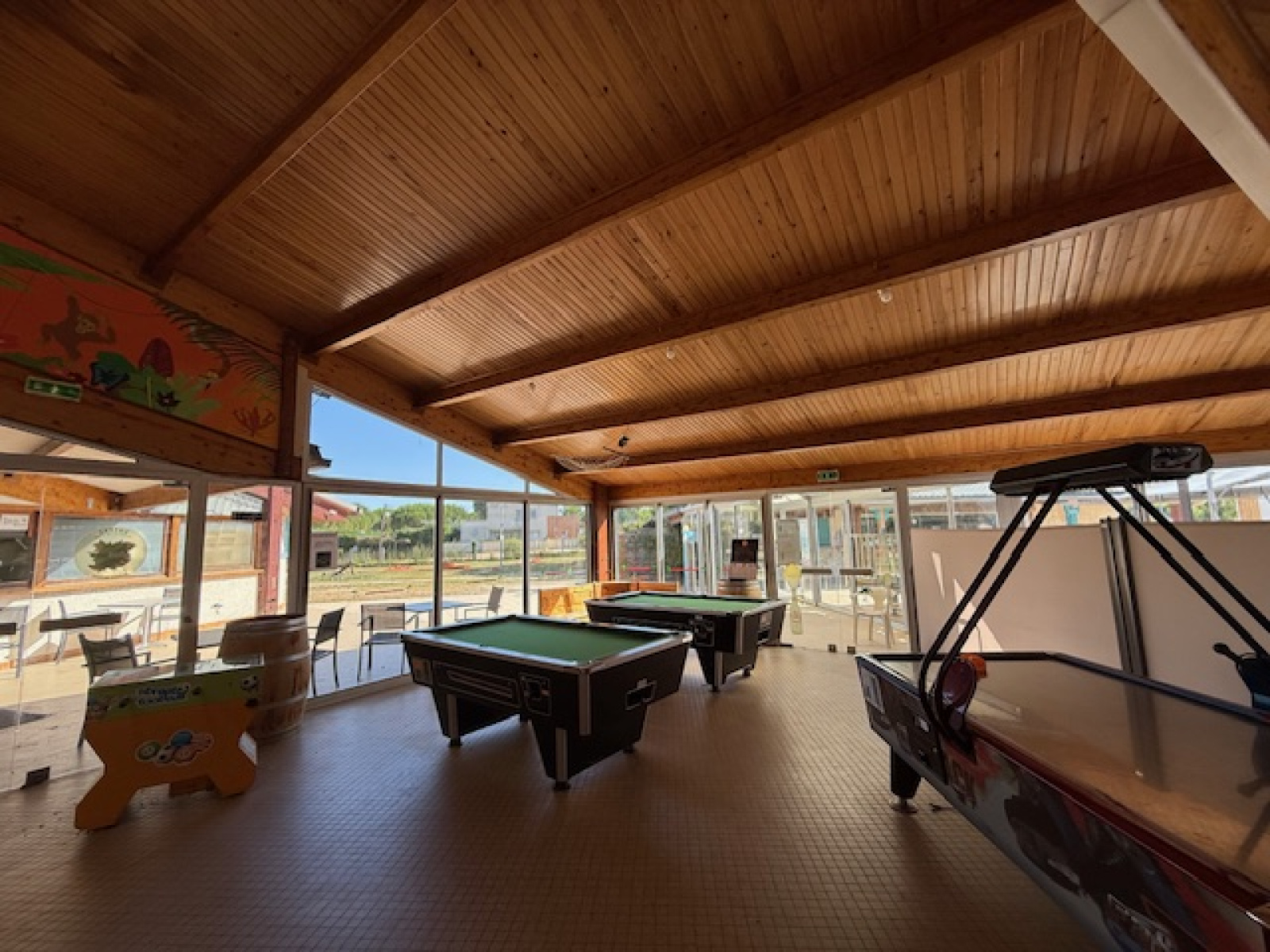 Sur le terrain, plusieurs espaces jeux pour enfants et adultes : terrain de tennis, golf miniature, toboggan et jeux gonflables ainsi que des terrains de boules.