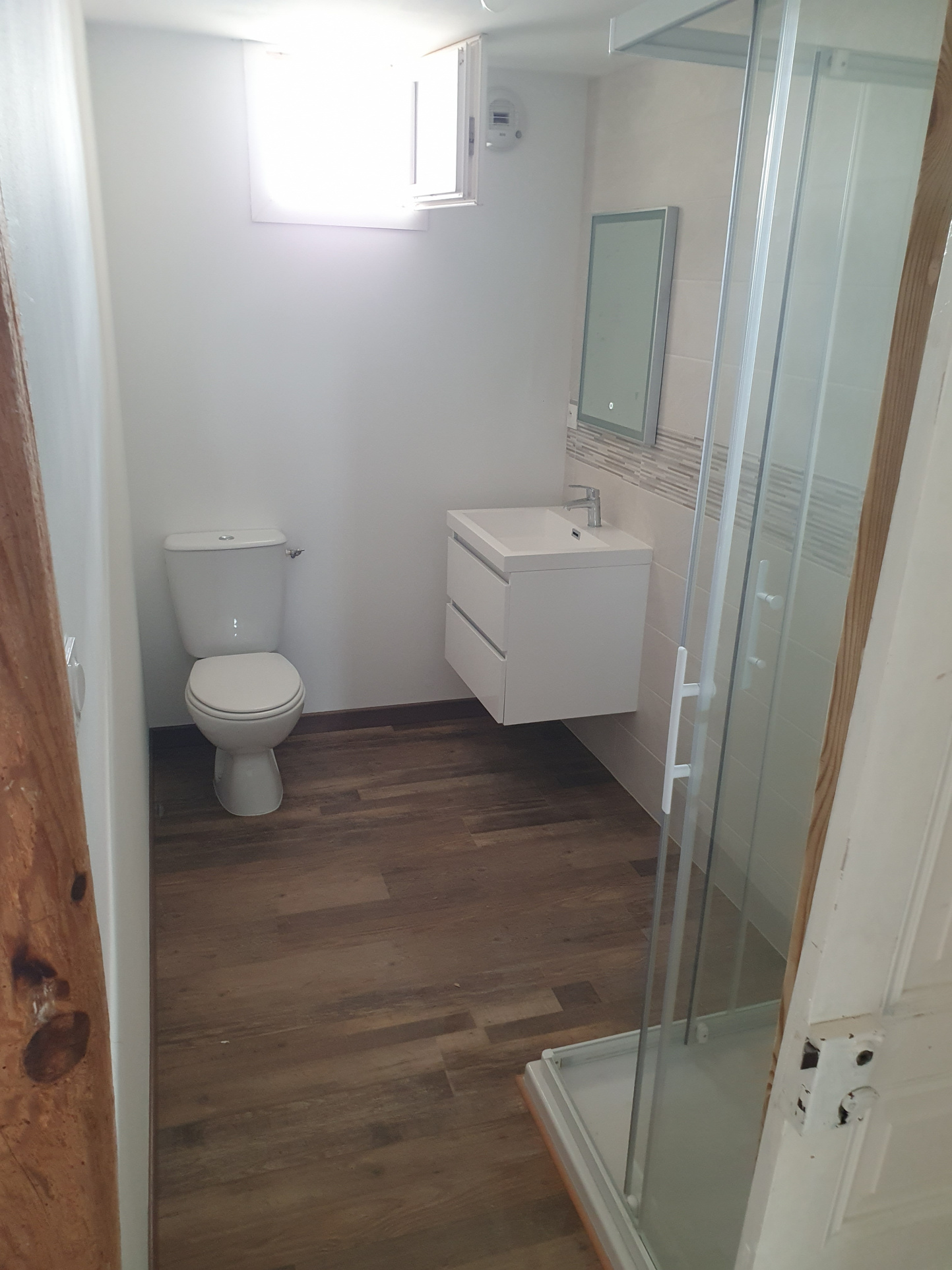Une salle d'eau avec WC est en cours de création. Vous trouverez également une buanderie avec espace de rangement.