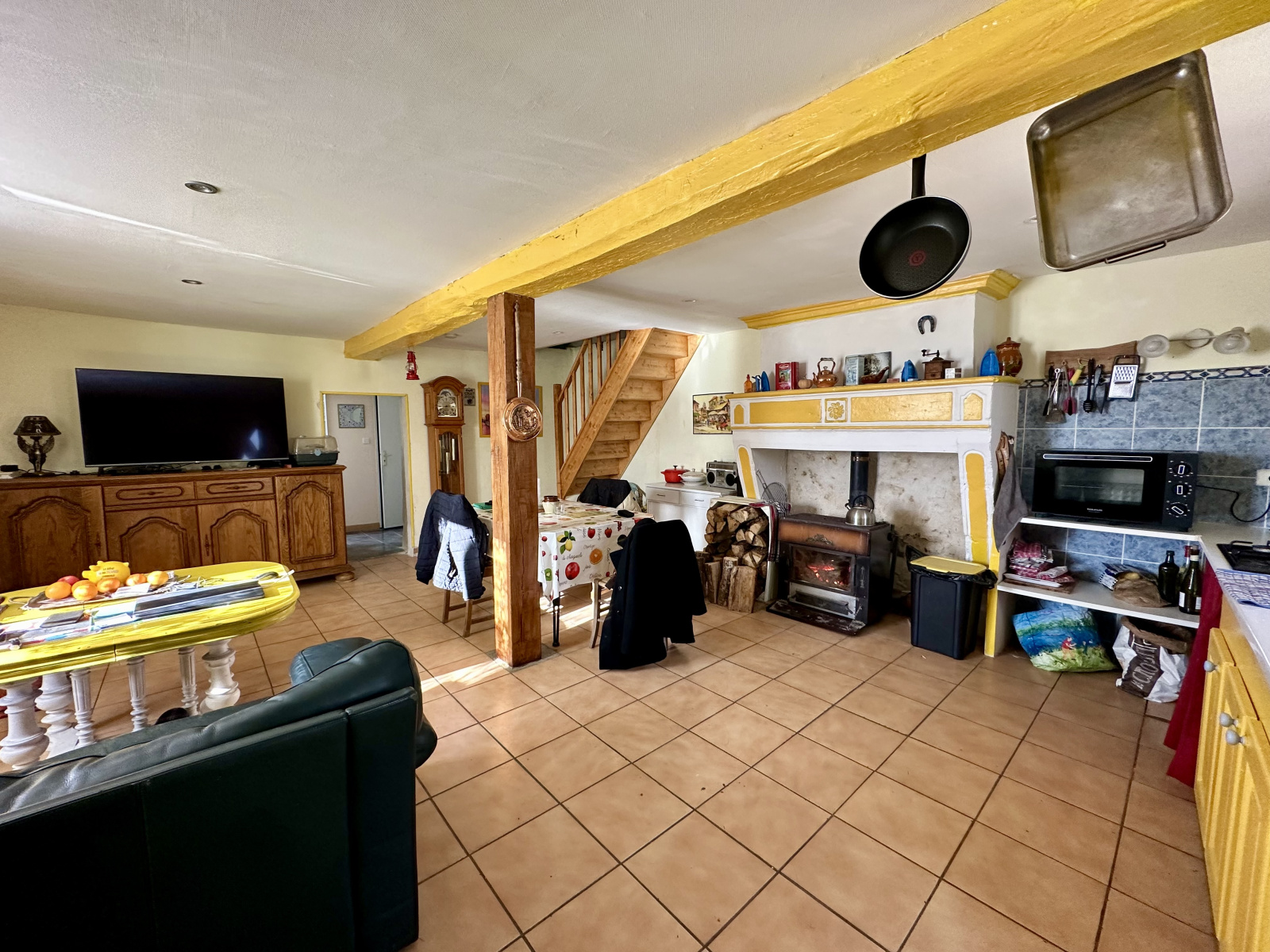 Maison en pierres mitoyenne sur 1 côté, comprenant : une cuisine ouverte sur séjour, wc, salle de bains, 2 chambres, salon, bureau. Toiture remaniée et isolation des combles refaite.