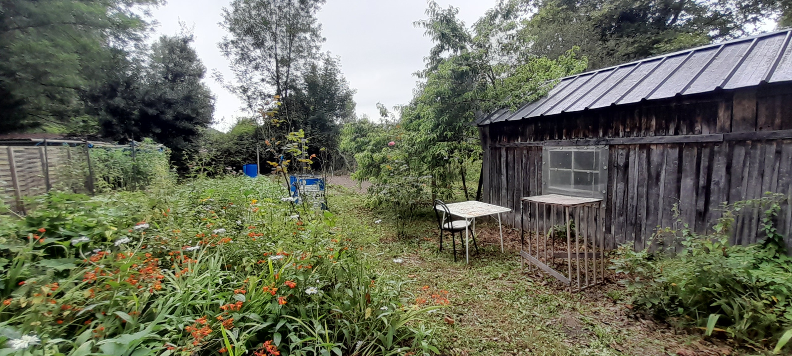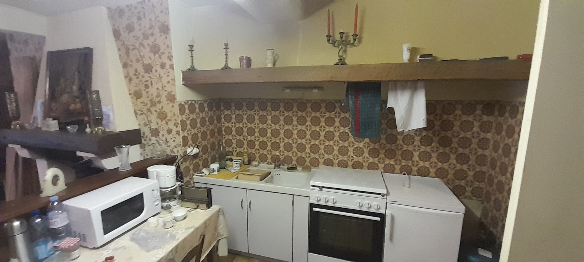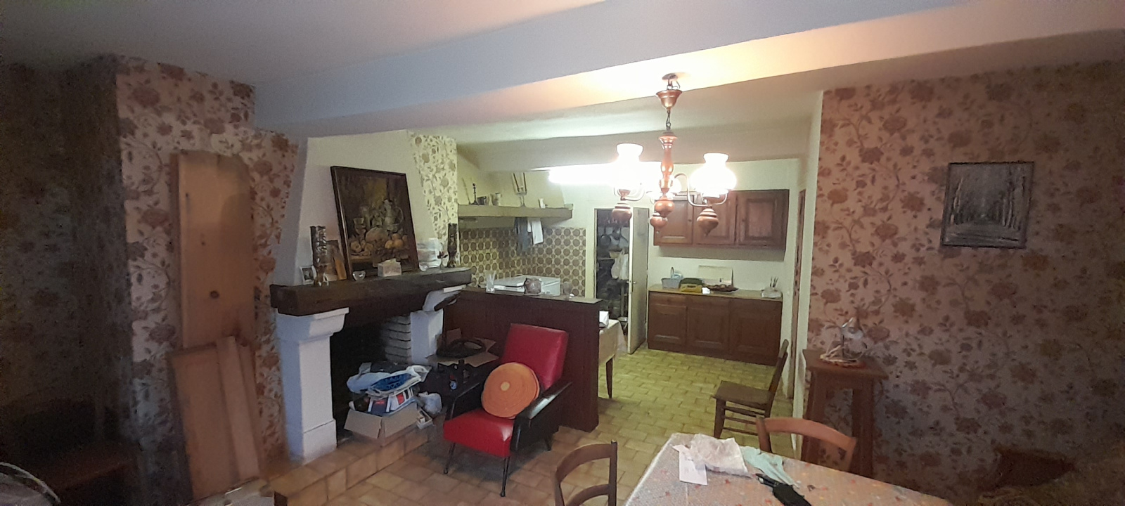 Une maison mitoyenne d'un côté, TOITURE NEUVE, comprenant au rez-de-chaussée cuisine ouverte sur un séjour, cave, WC, petite buanderie.