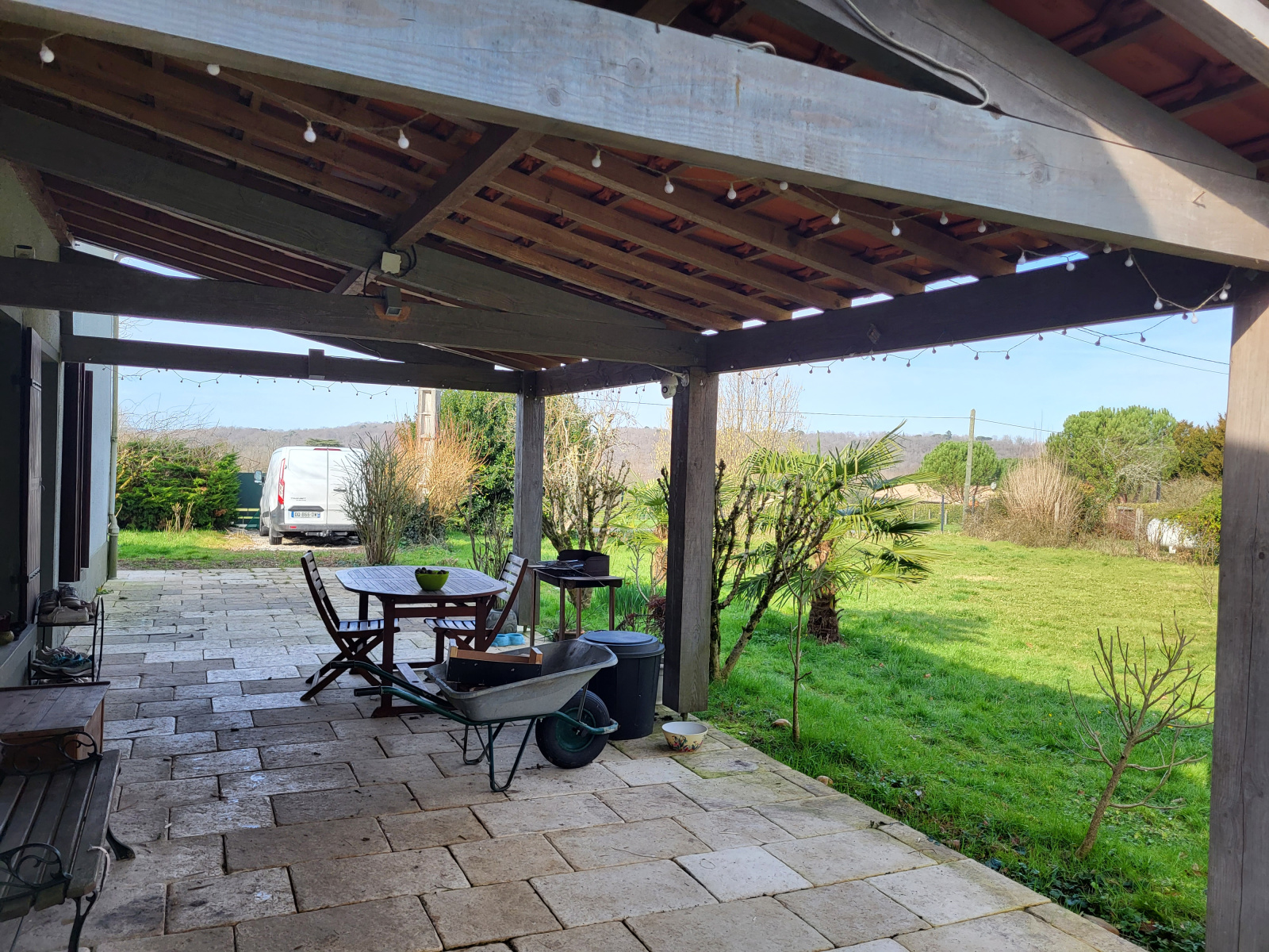 Grande terrasse avec une partie couverte (25m²), permettant de profiter des beaux jours et des soirées d'été.