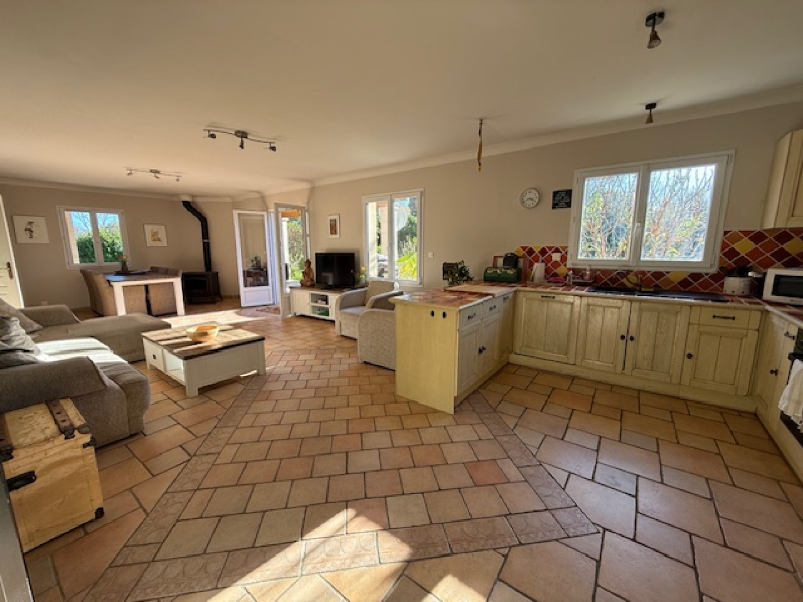 Une belle terrasse couverte de plus de 30 m2 vous permettra de profiter des exterieurs en famille ou entre amis.