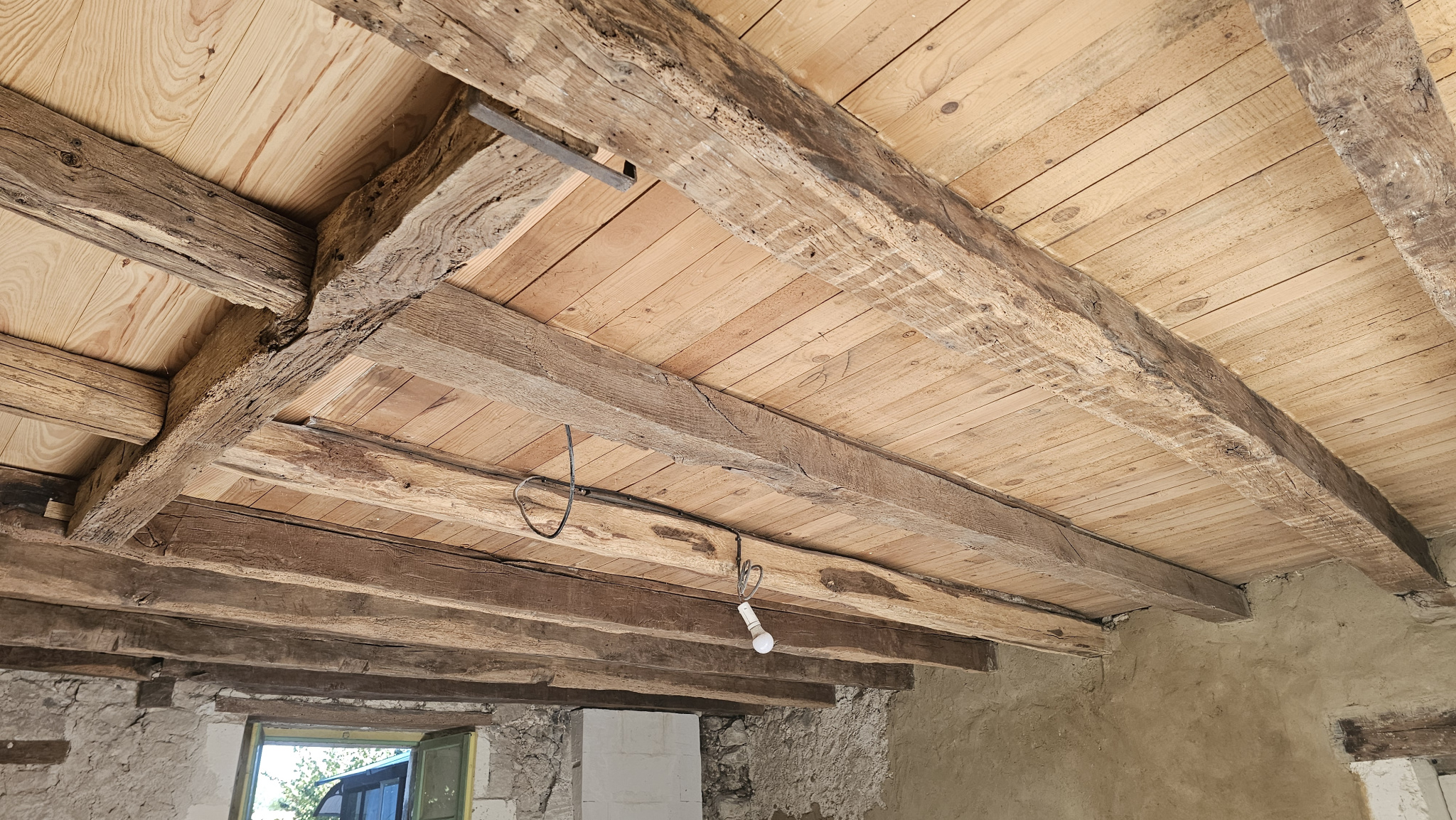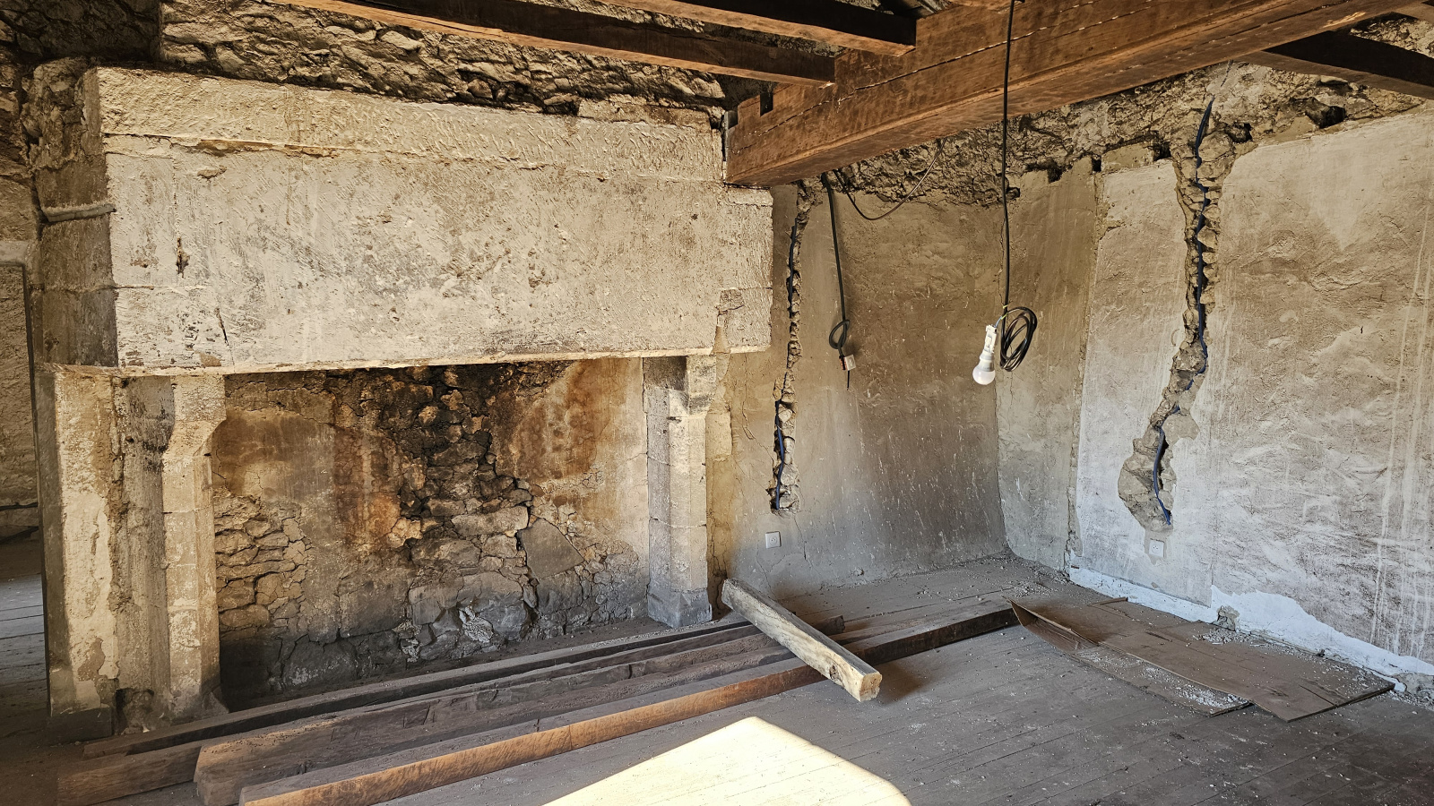 Vous trouverez de belles cheminées monumentales, ainsi que de belles poutres.