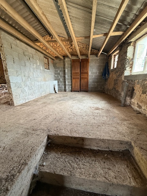 Sur un terrain clos avec ancienne grange de plus de 80 m2 comprenant garage, atelier et étage.